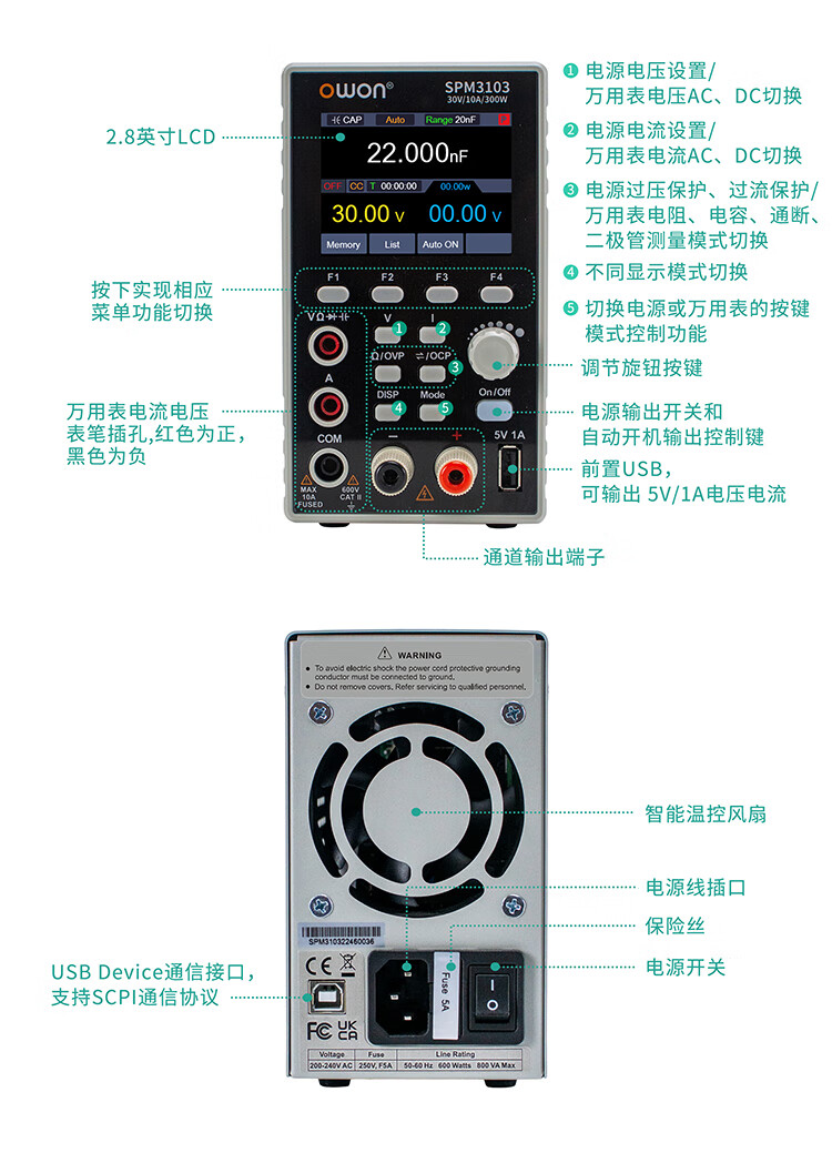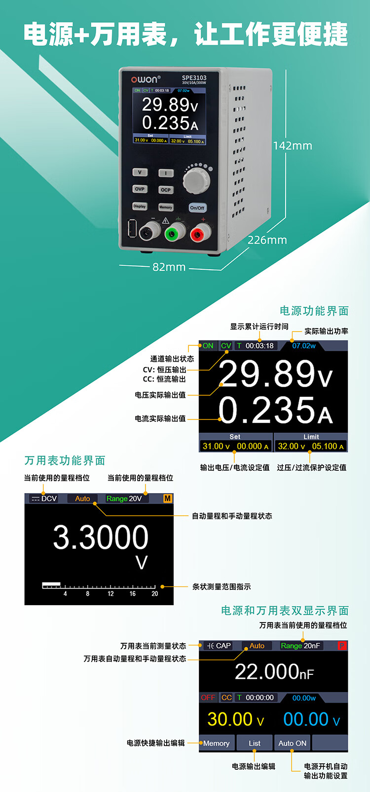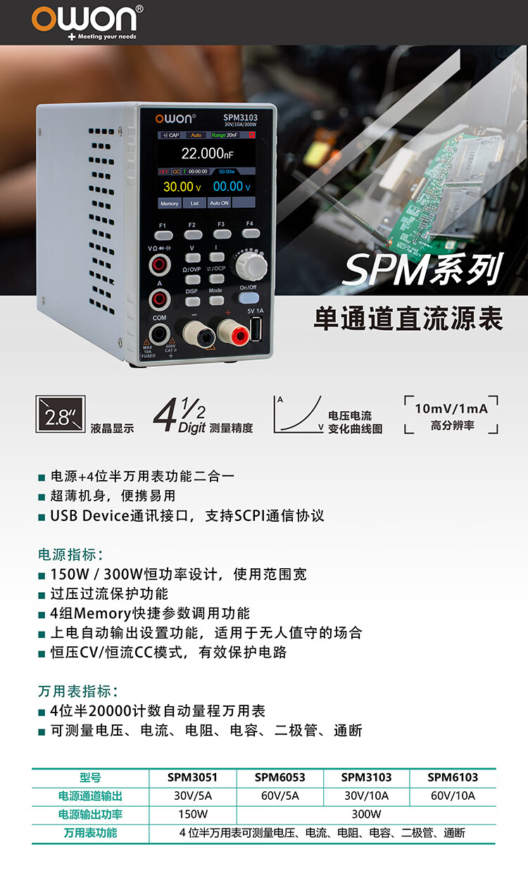 Owon SPM6103 DC source meter programmable power supply programmable 300W/60V/10A four and a half digit multimeter