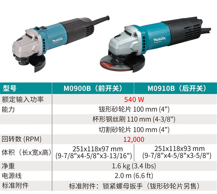 Makita (MAKITA) M0900B angle grinder grinder angle grinder polishing machine cutting machine hand grinding wheel front switch