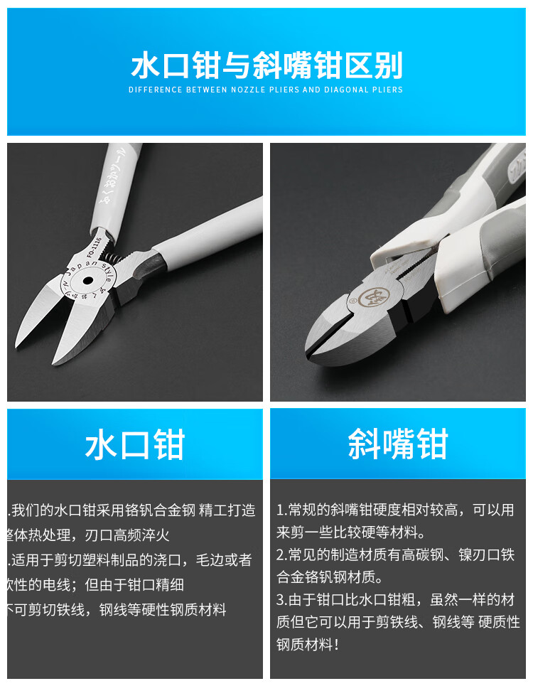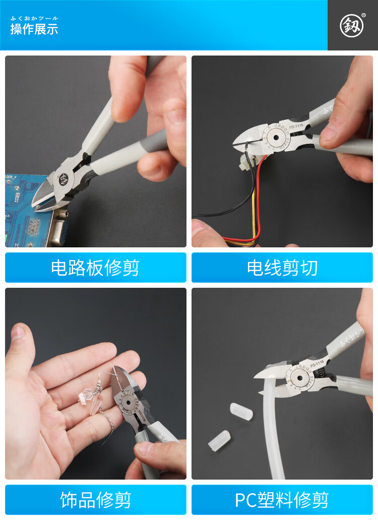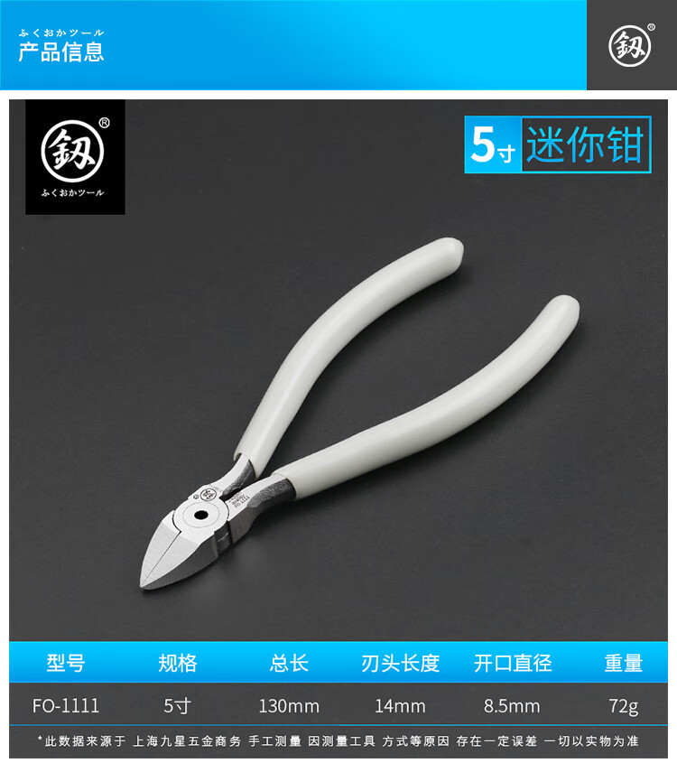 Fukuoka Tools electronic water mouth pliers scissor model plastic industrial grade oblique nose pliers sharp oblique nose pliers 5 inches