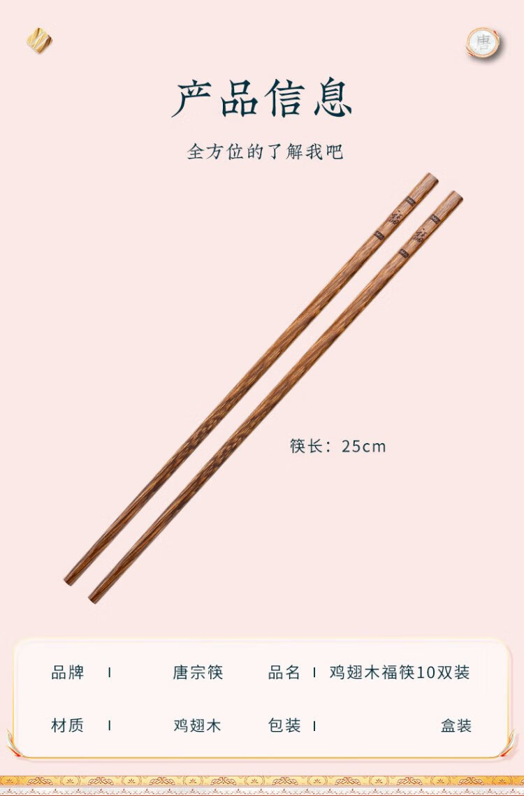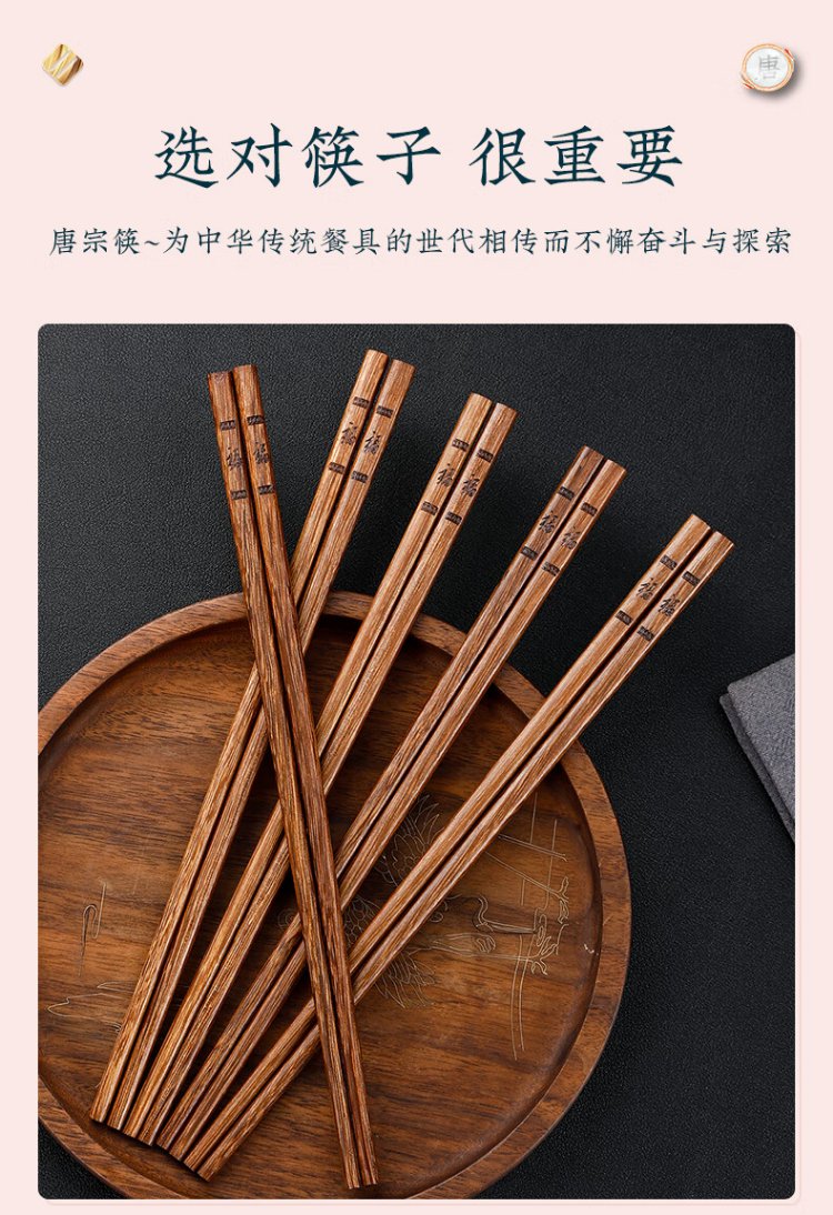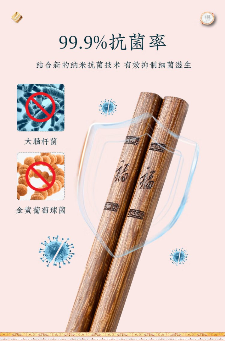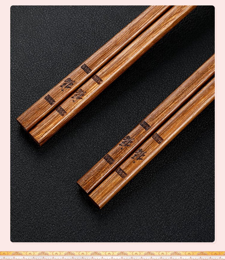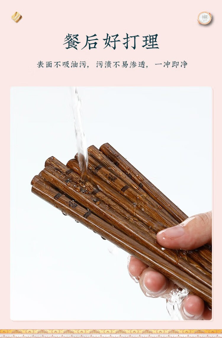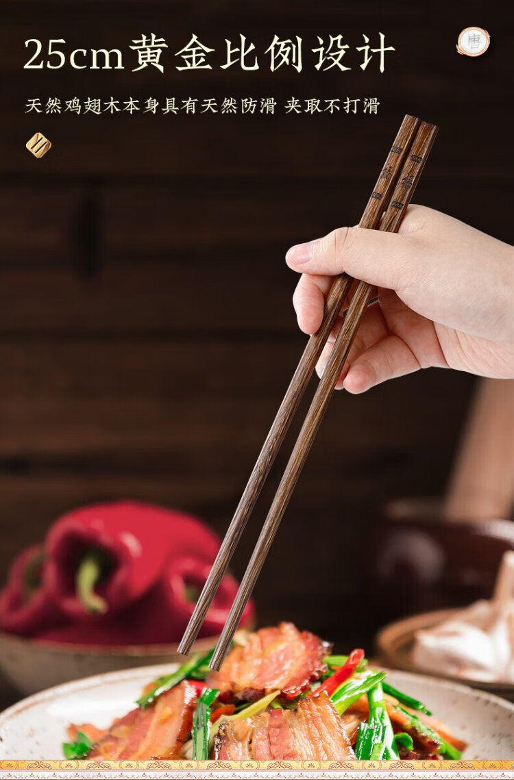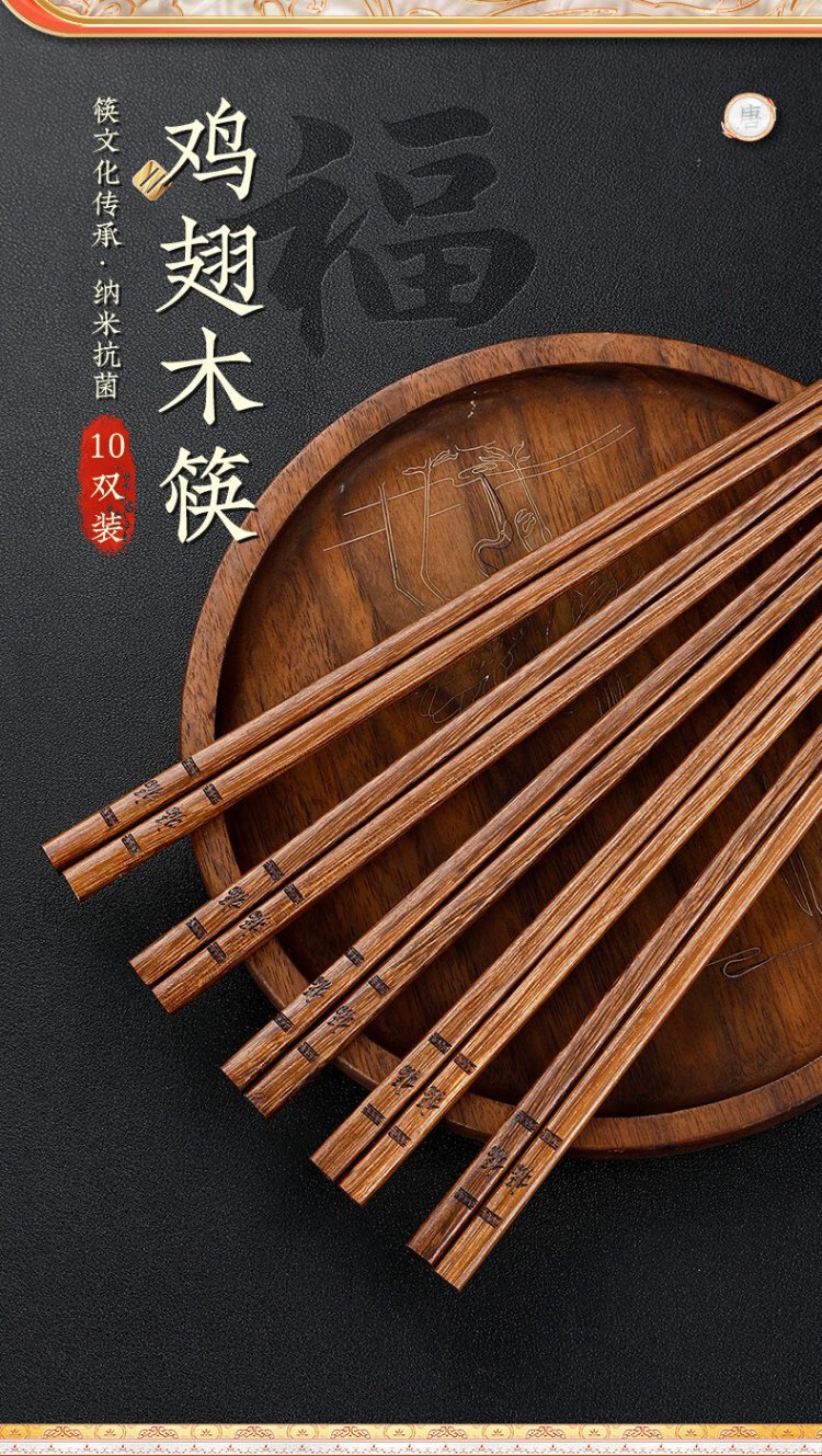 Tang Zong Chopsticks Antibacterial Rate 99.9% Chicken Wing Wooden Chopsticks 10 Pairs - Kefu Household Solid Wood High-end Wooden Tableware C3054