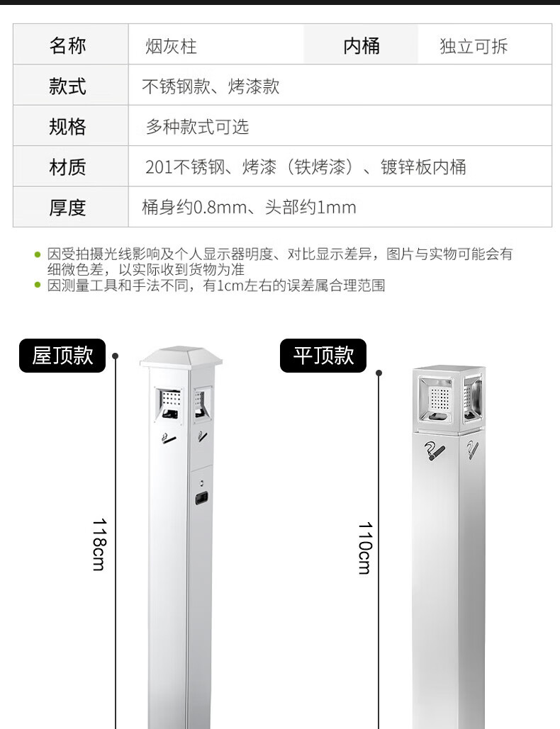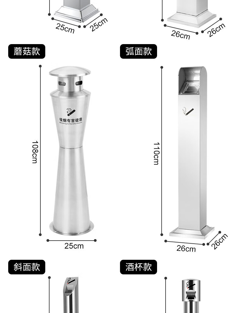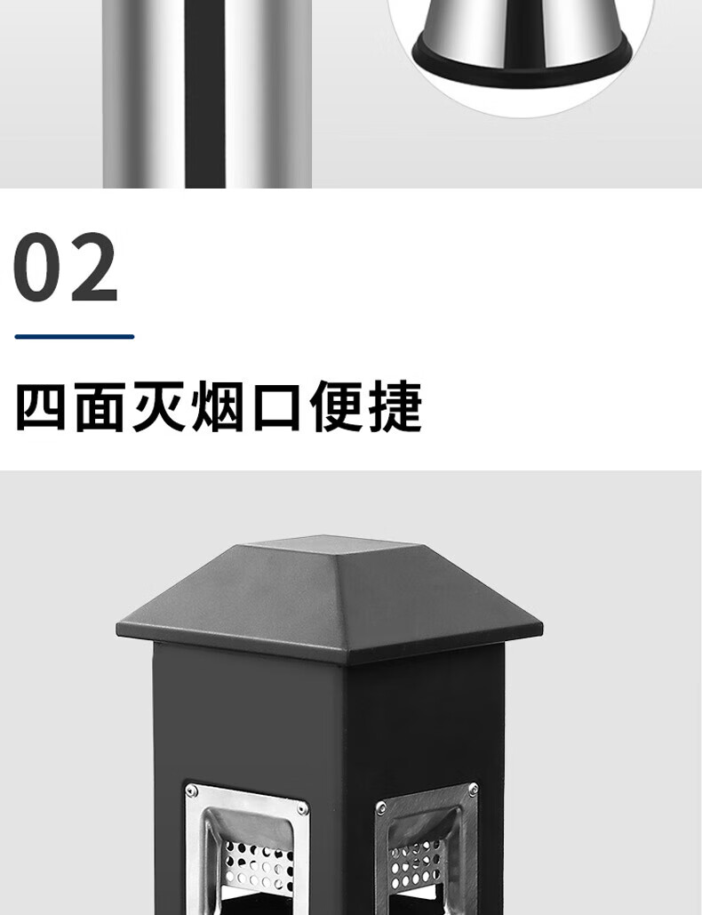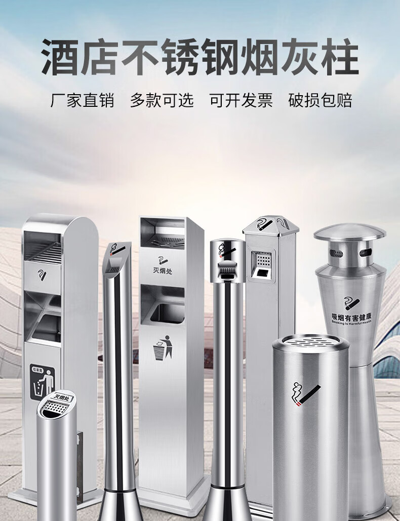 Supercloud Outdoor Stainless Steel Ash Column Vertical Cigarette Butt Column Smoking Column Smoke Extinguishing Trash Can Outdoor Floor Standing Ashtray Ash Bucket Square Top Type A