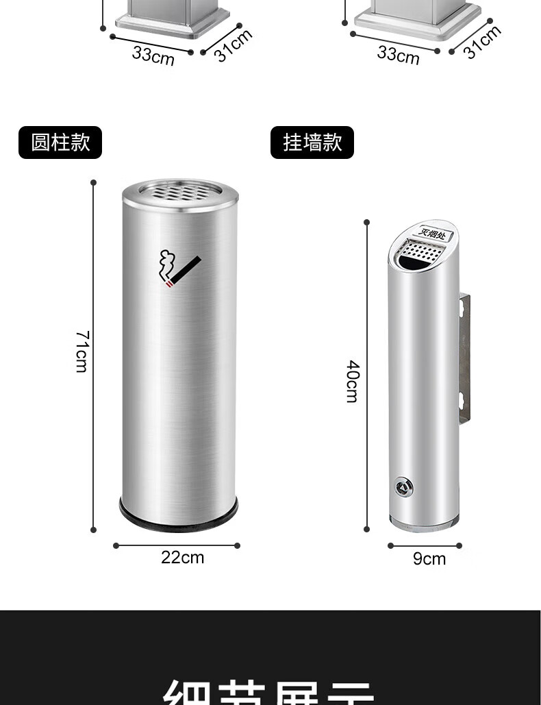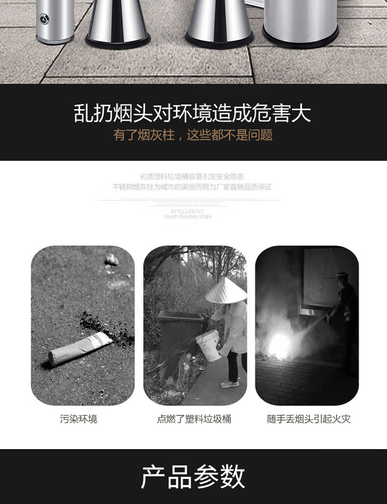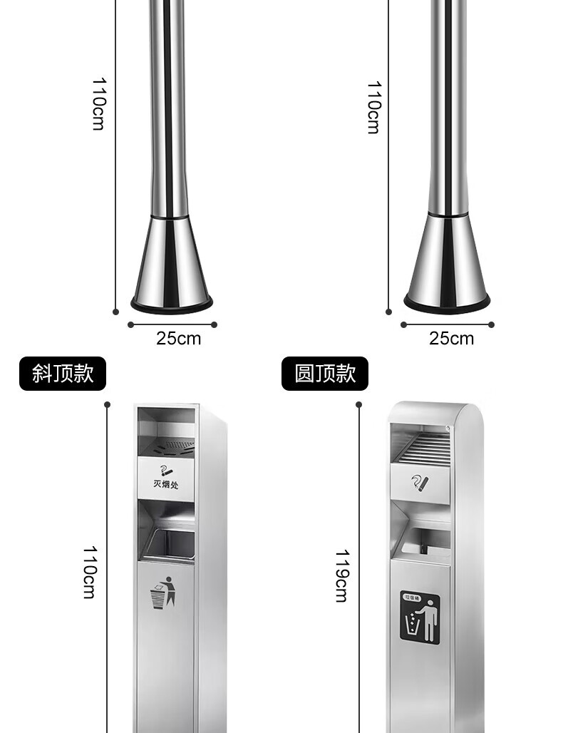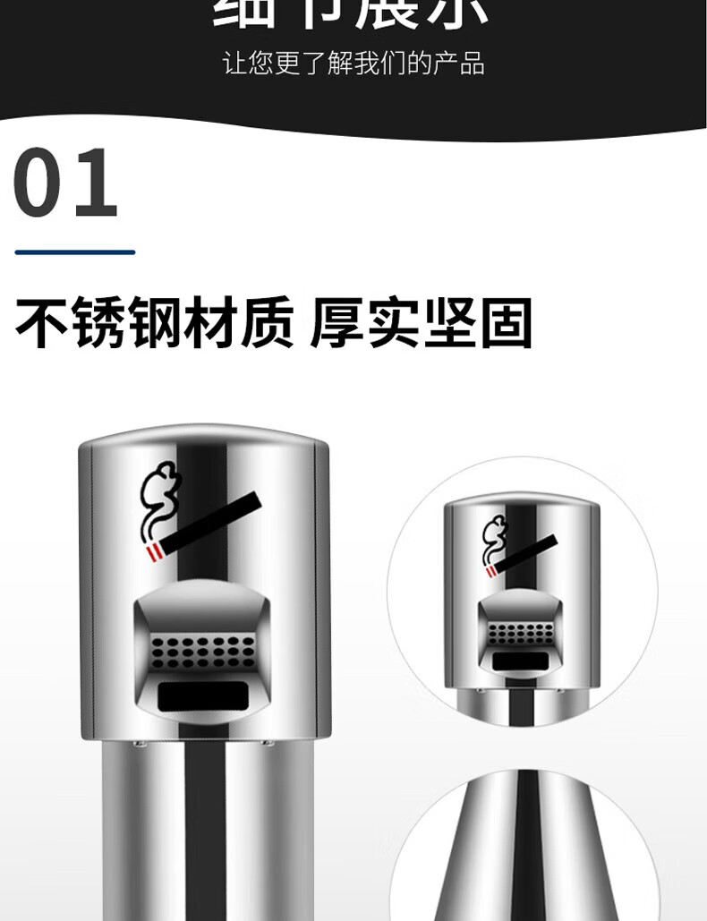 Supercloud Outdoor Stainless Steel Ash Column Vertical Cigarette Butt Column Smoking Column Smoke Extinguishing Trash Can Outdoor Floor Standing Ashtray Ash Bucket Square Top Type A