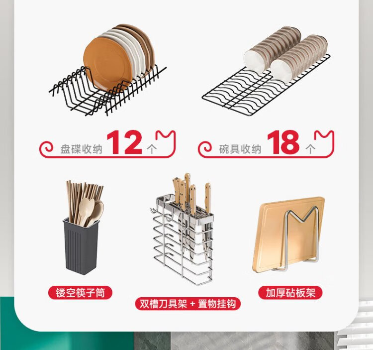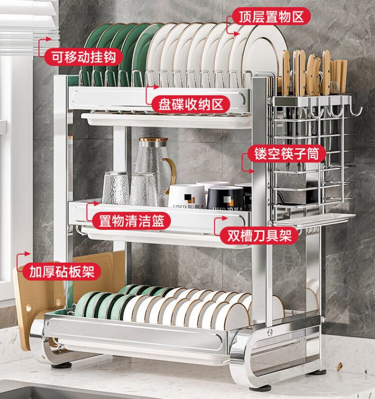 Kitchen Story kitchen dish rack 304 stainless steel drain bowl rack bowl and chopstick storage knife chopstick tube chopping board utensil storage