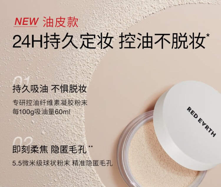 Red Earth Essence Loose Powder Long-lasting Makeup Setting Oil Control Delicate Non-Flying Powder - PK40 Micron White 6.5g