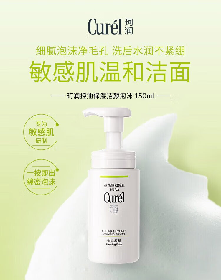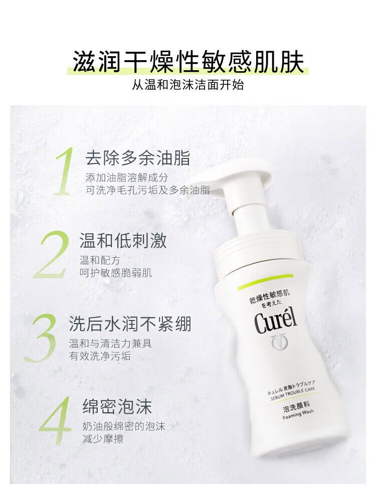 Curel Oil Control Moisturizing Cleansing Foam 150ml Amino Acid Facial Cleanser Oil Control Cleansing Foam