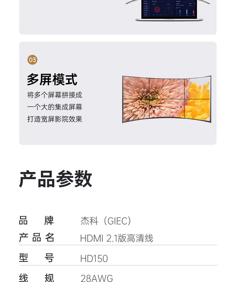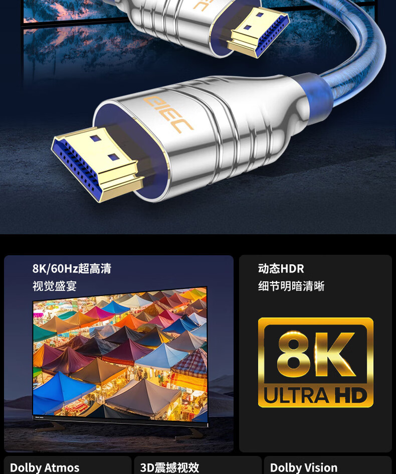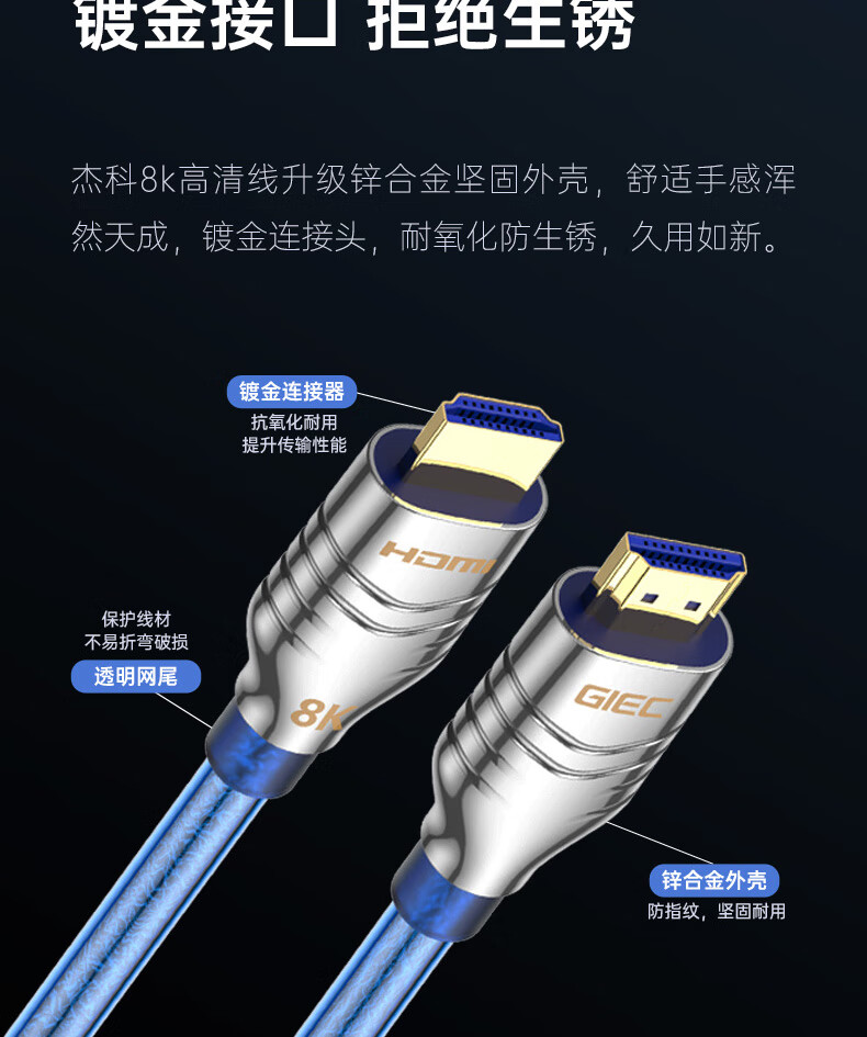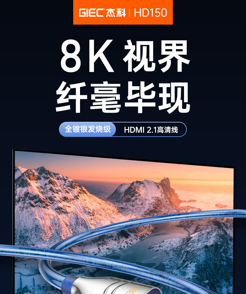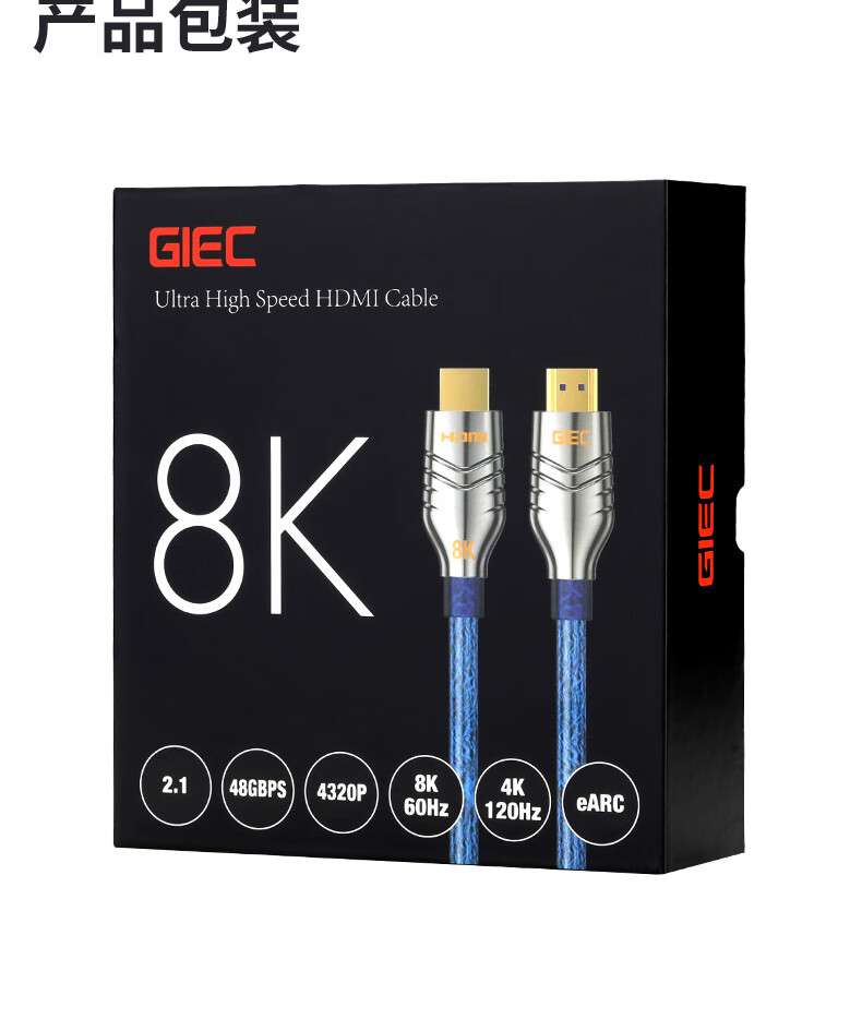 GIEC HDMI cable version 2.1 8K60Hz 4K120Hz digital high-definition cable compatible with HDMI2.0 laptop set-top box to TV projection video cable 1.5 meters