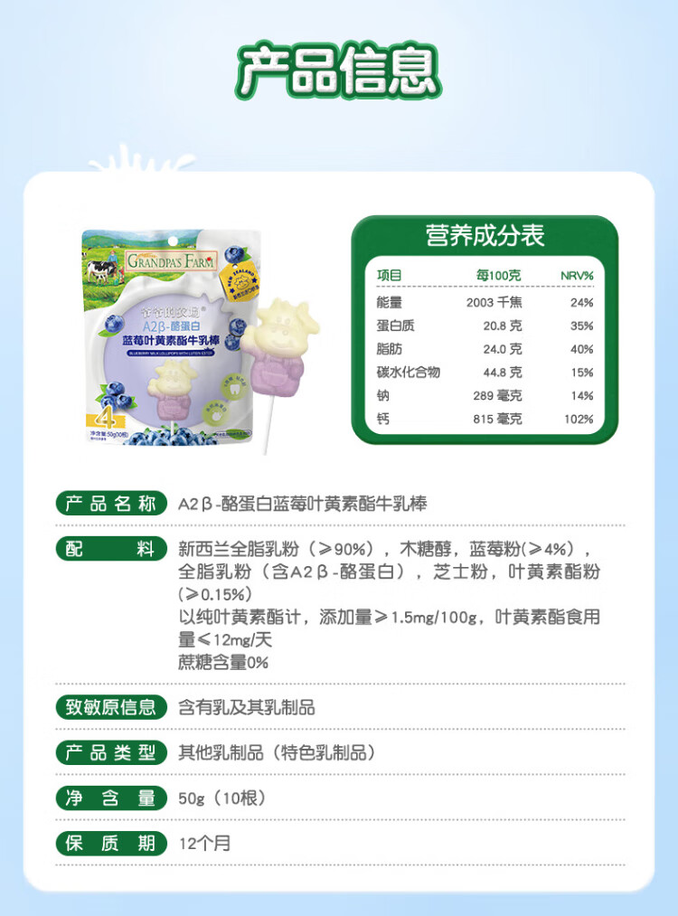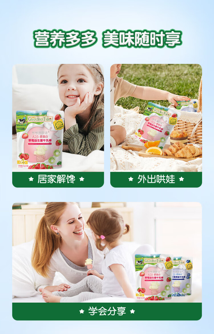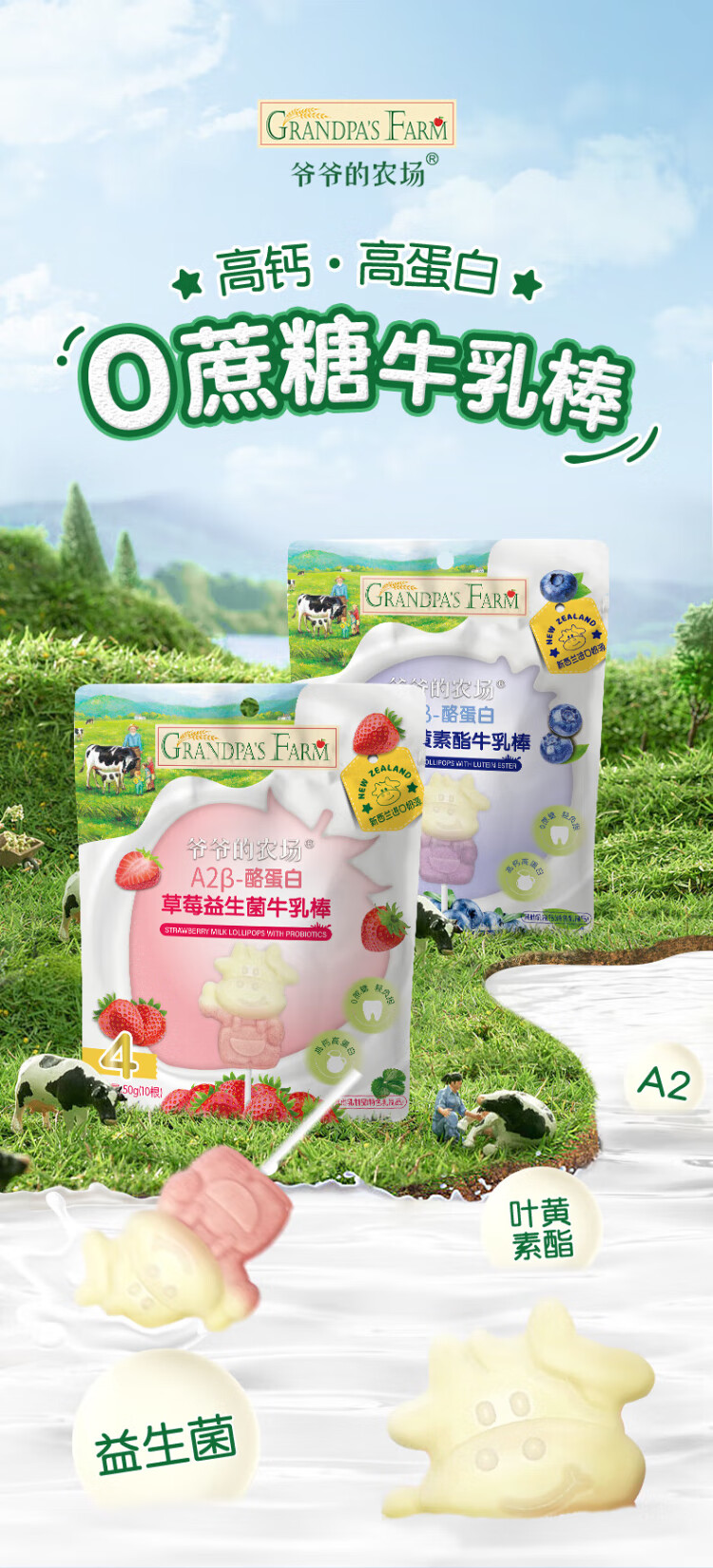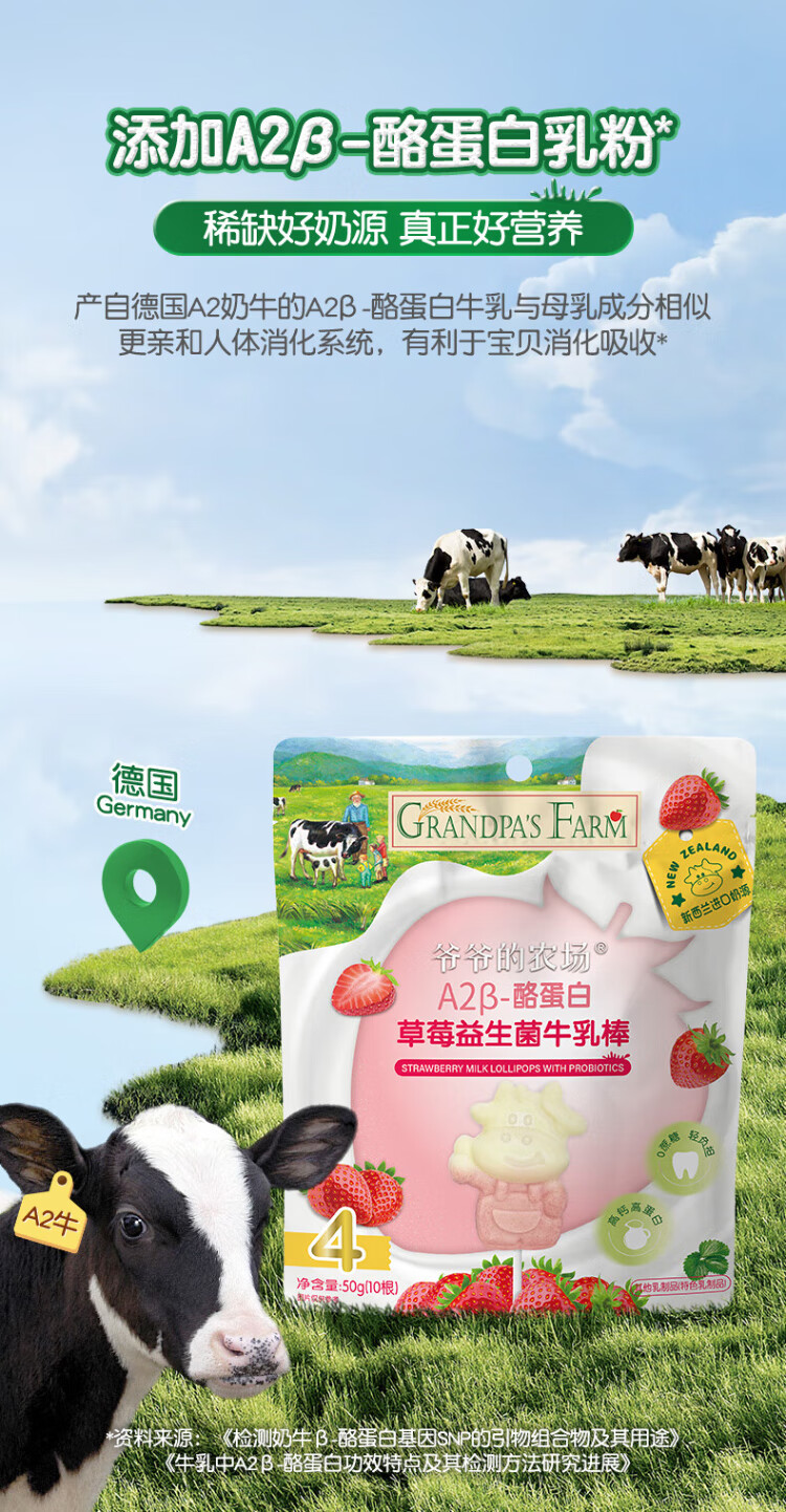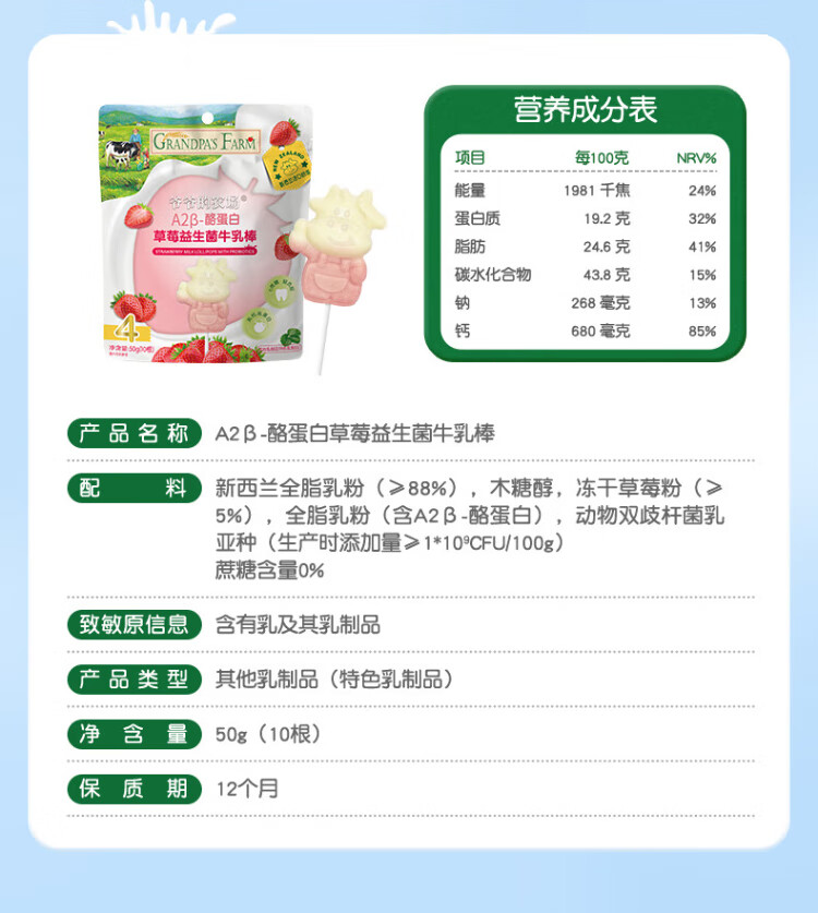 Grandpa's Farm A2 - Casein Strawberry Probiotic High Calcium Milk Bar Children's Baby Snack Milk Lollipop 50g