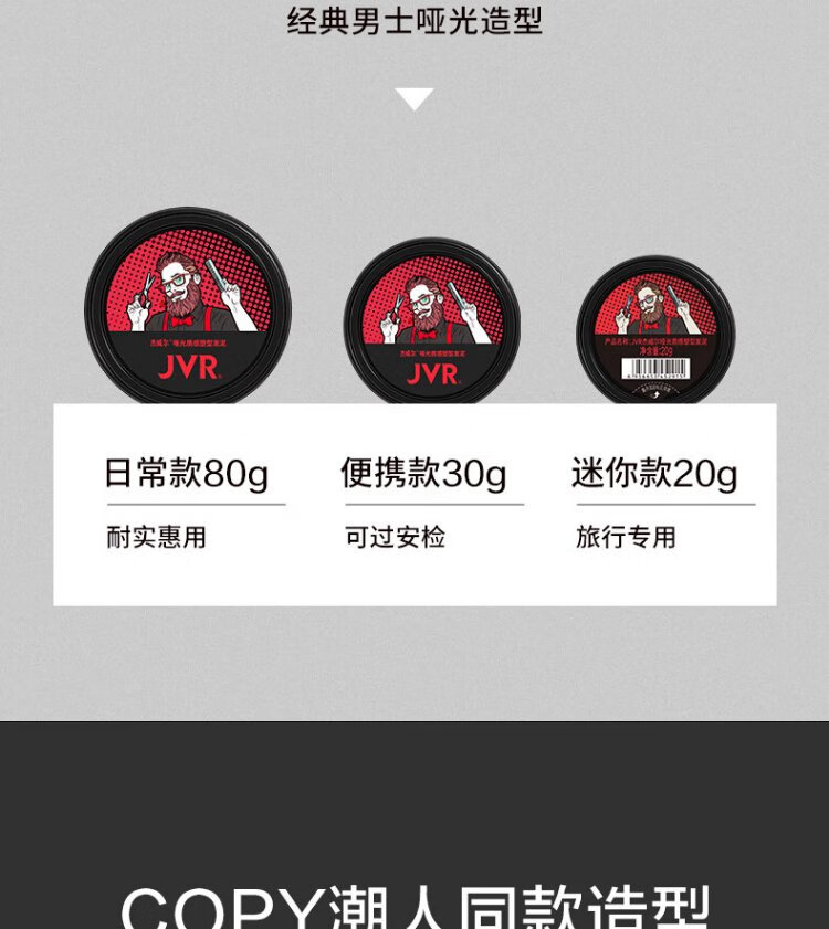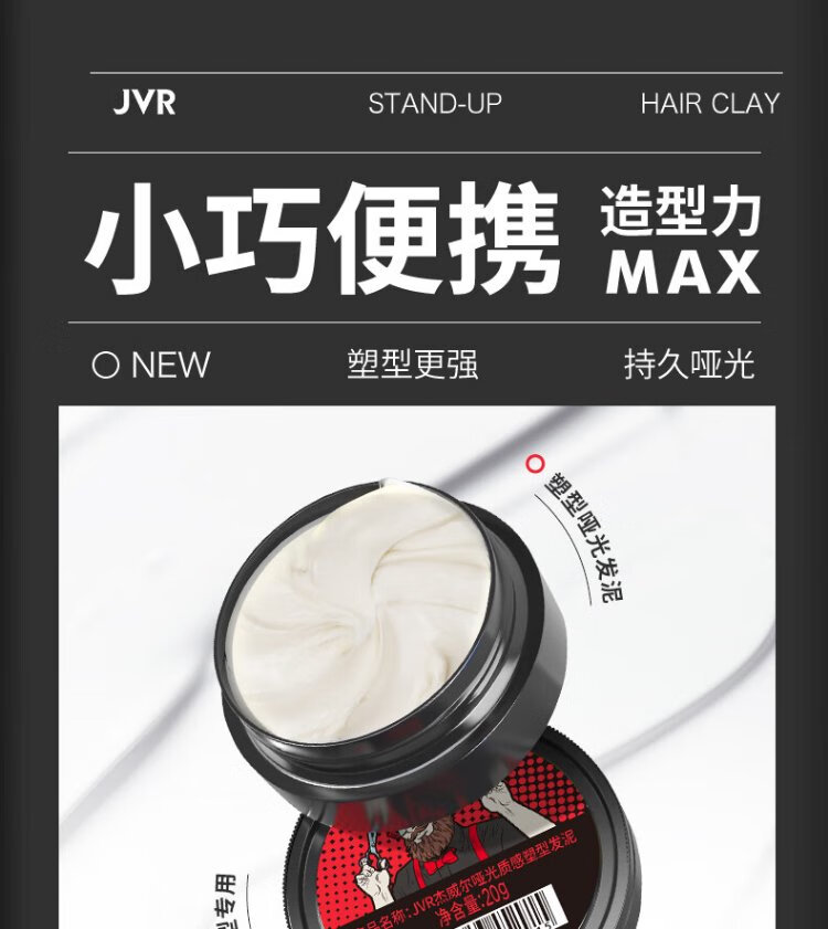 Jewel men's matte hair mud hair shaping natural fluffy hair gel hair wax refreshing long-lasting styling travel size 20g