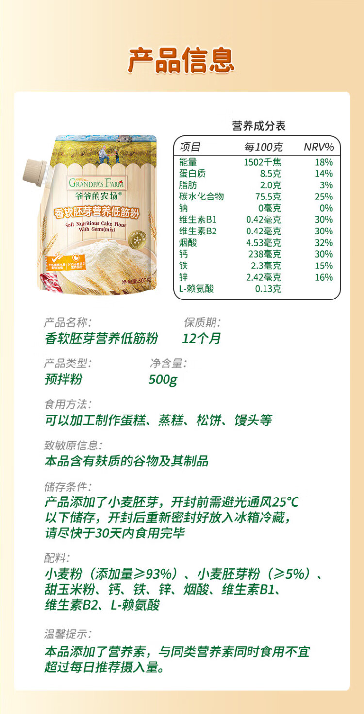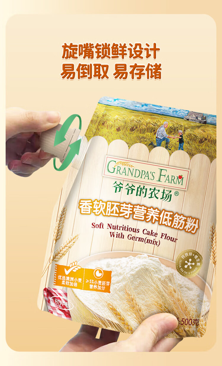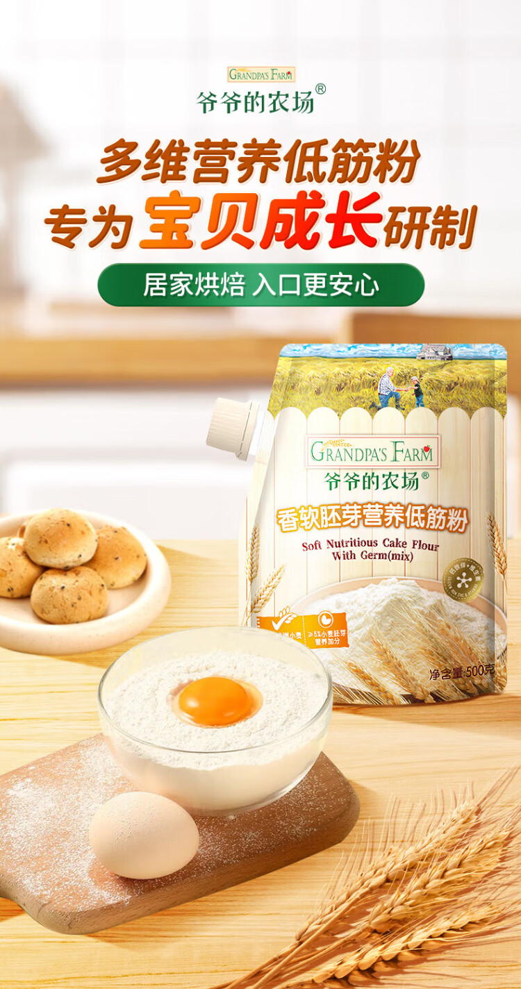 Grandpa's farm soft germ nutritional low-gluten flour 500g children's wheat flour cake muffin baking baby homemade food supplement