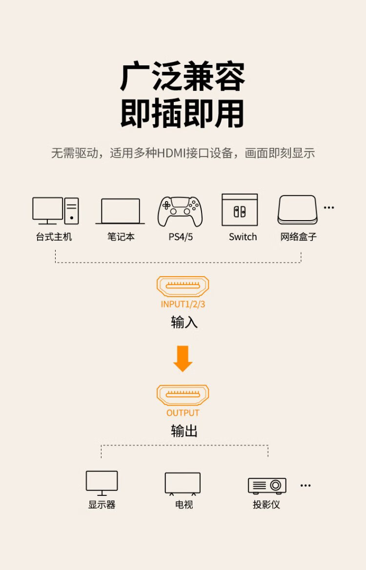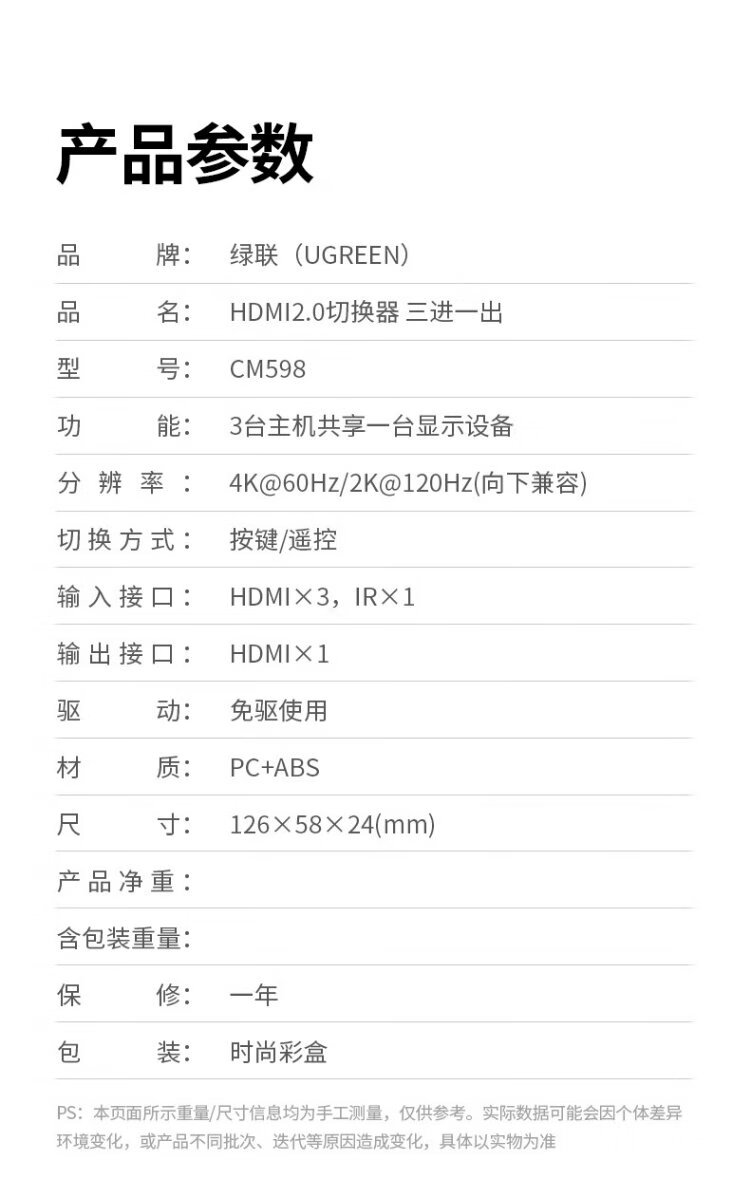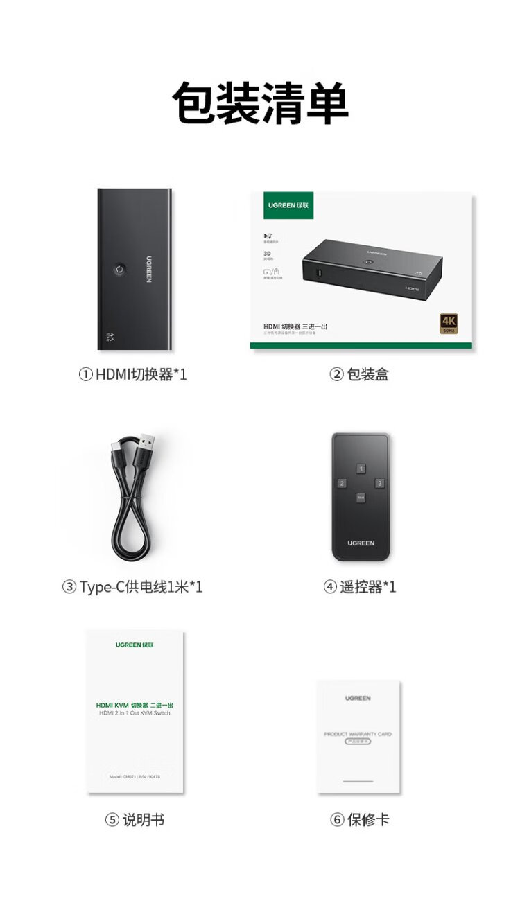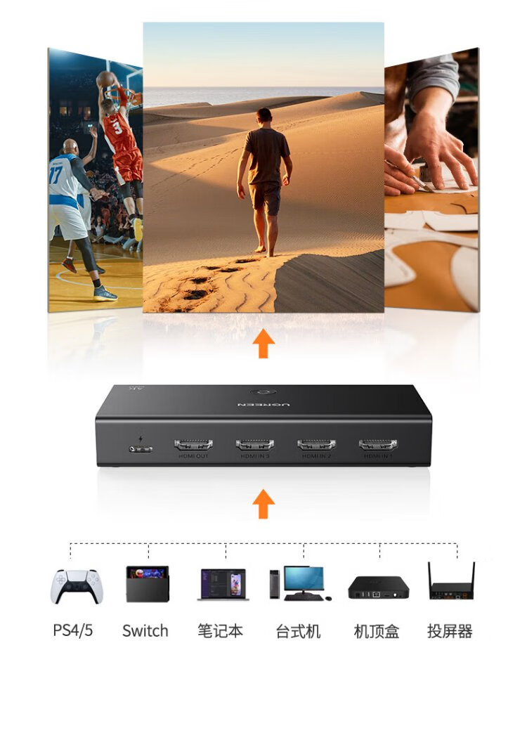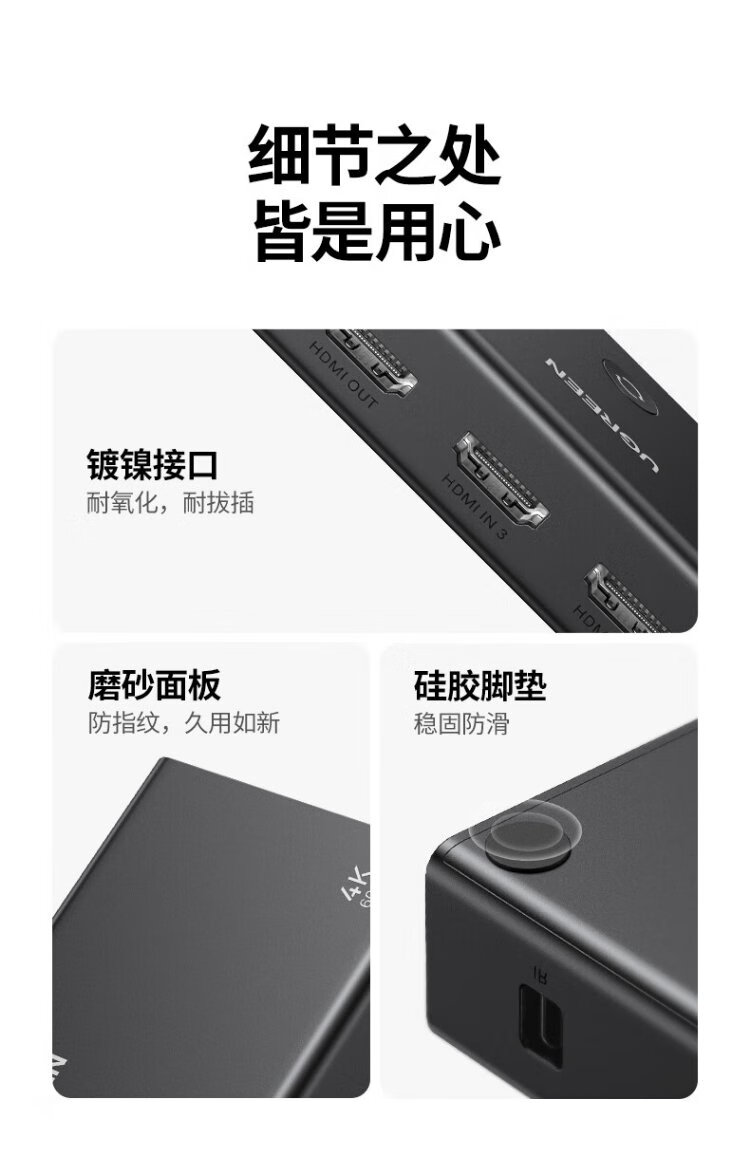 Greenlink HDMI2.0 switcher 3 in 1 out 4K60Hz 3 in 1 out video screen cutter notebook desktop connected to TV monitor projector compatible 2 in 1 out 90800