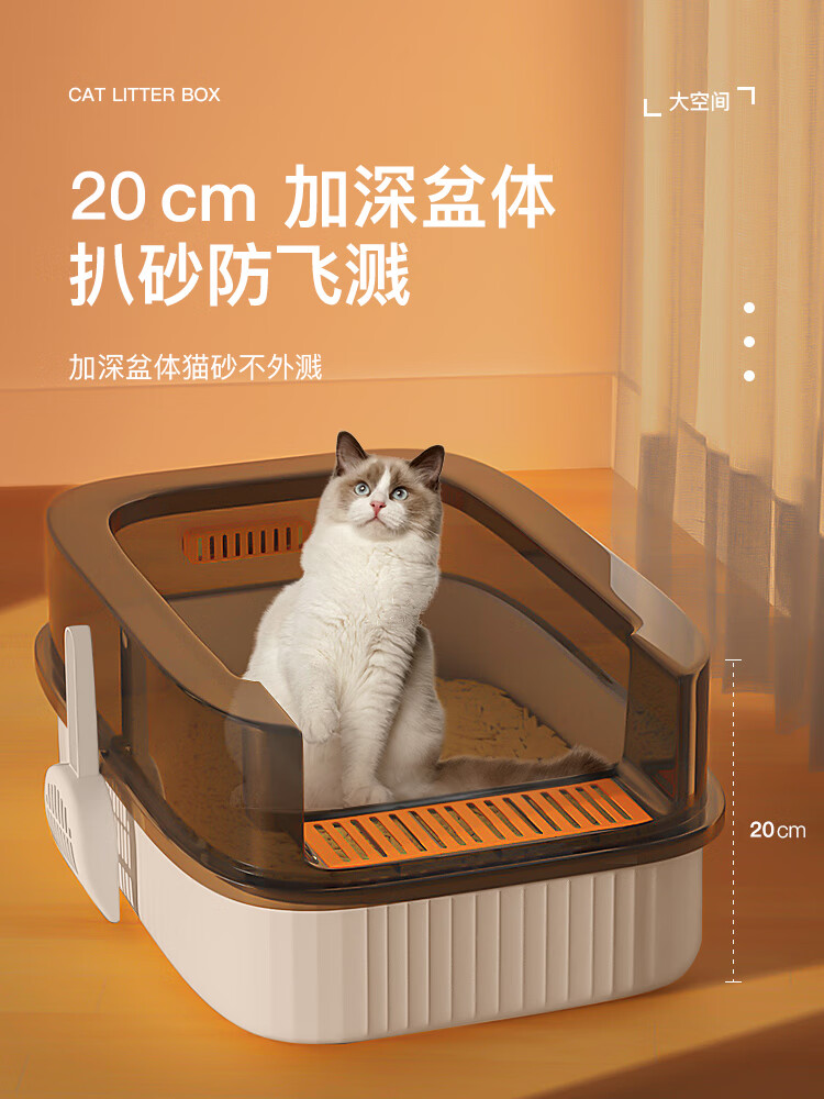 HELLOJOY cat litter box anti-splash semi-enclosed deodorizing cat toilet anti-splash cat litter box cat poop box with cat litter scoop