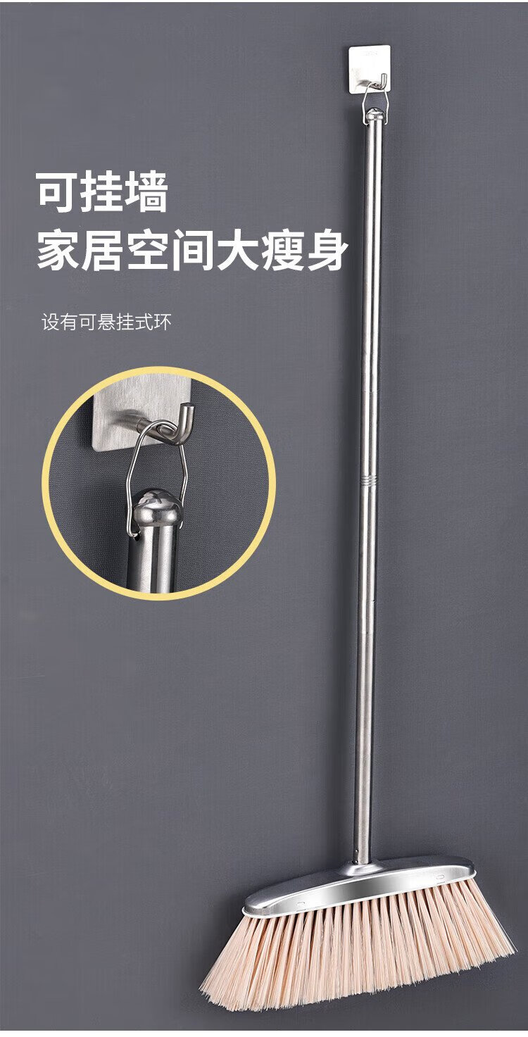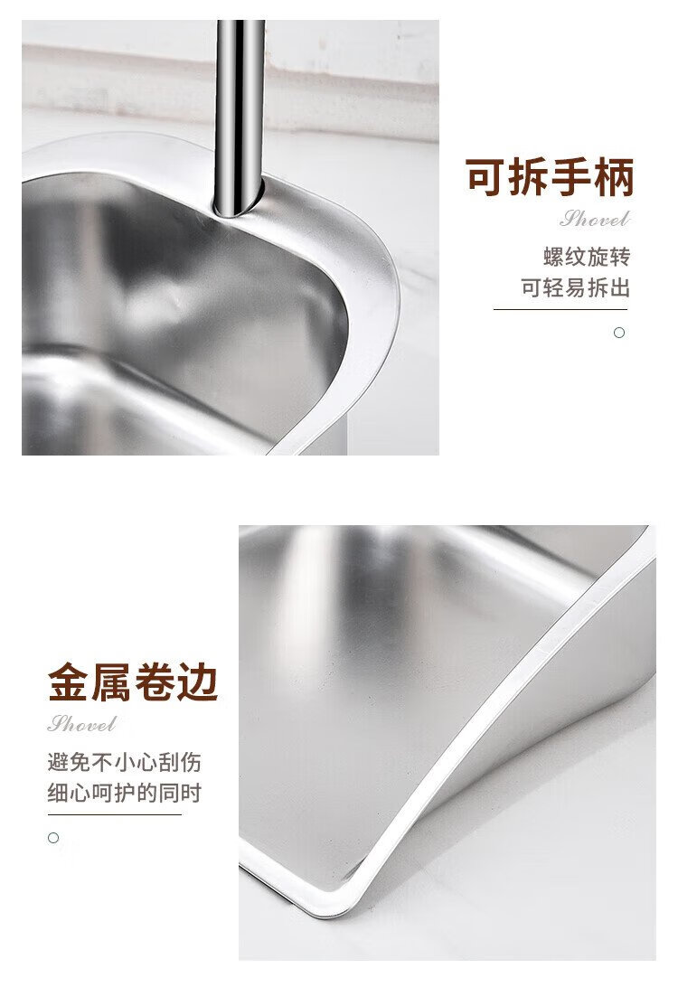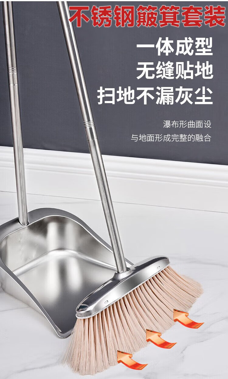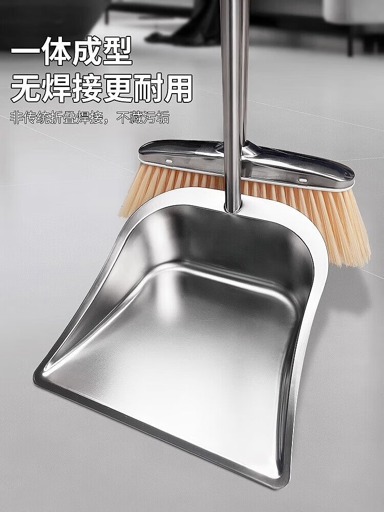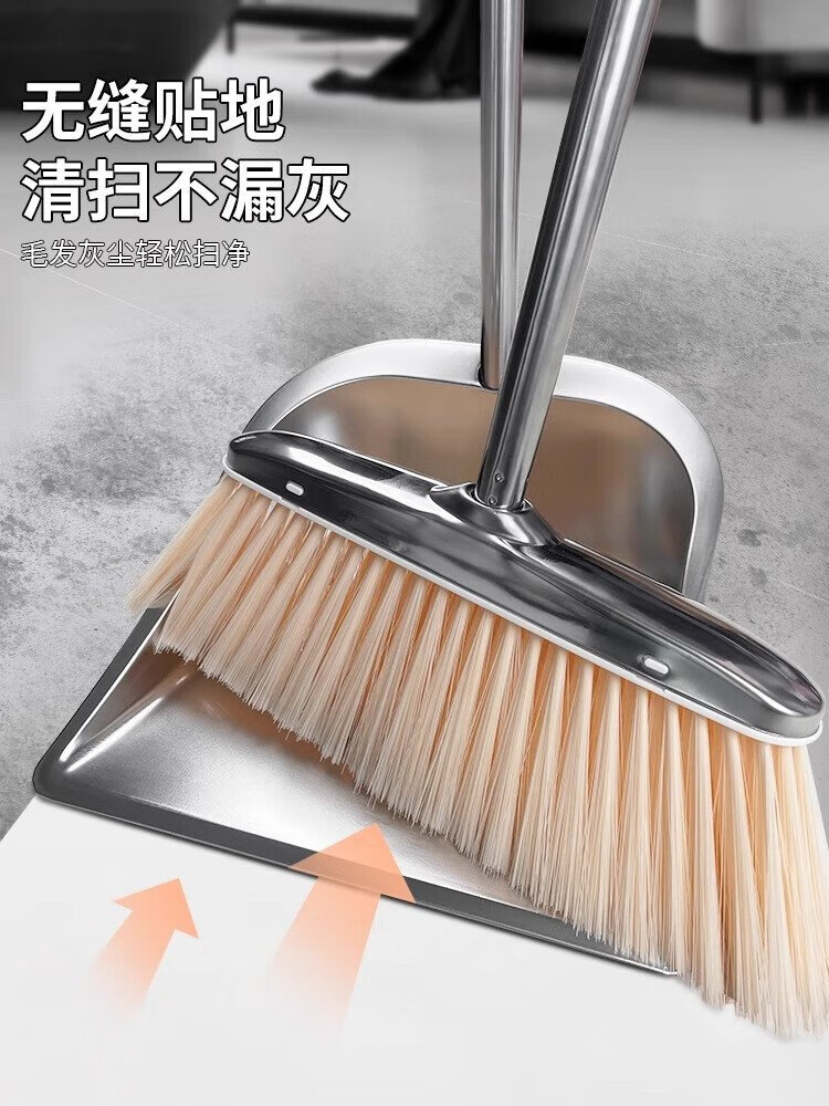 ORYT Broom and Dustpan Set Stainless Steel Garbage Shovel Windproof Standing Broom Bucket Set Extra Thick Two-piece Set