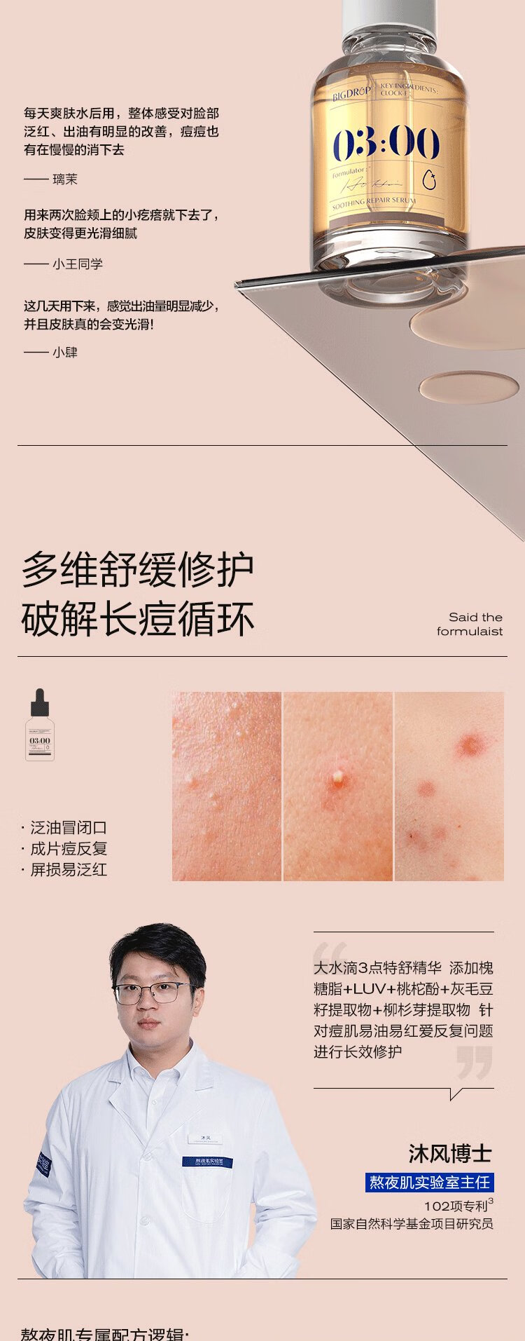 Big Water Drops Stay Up Night Essence Stay Up Night Repair, Translucent, Acne, Closed Mouth, Oil Control, Soothing, Smooth and Delicate 1ml*3 Trial Pack