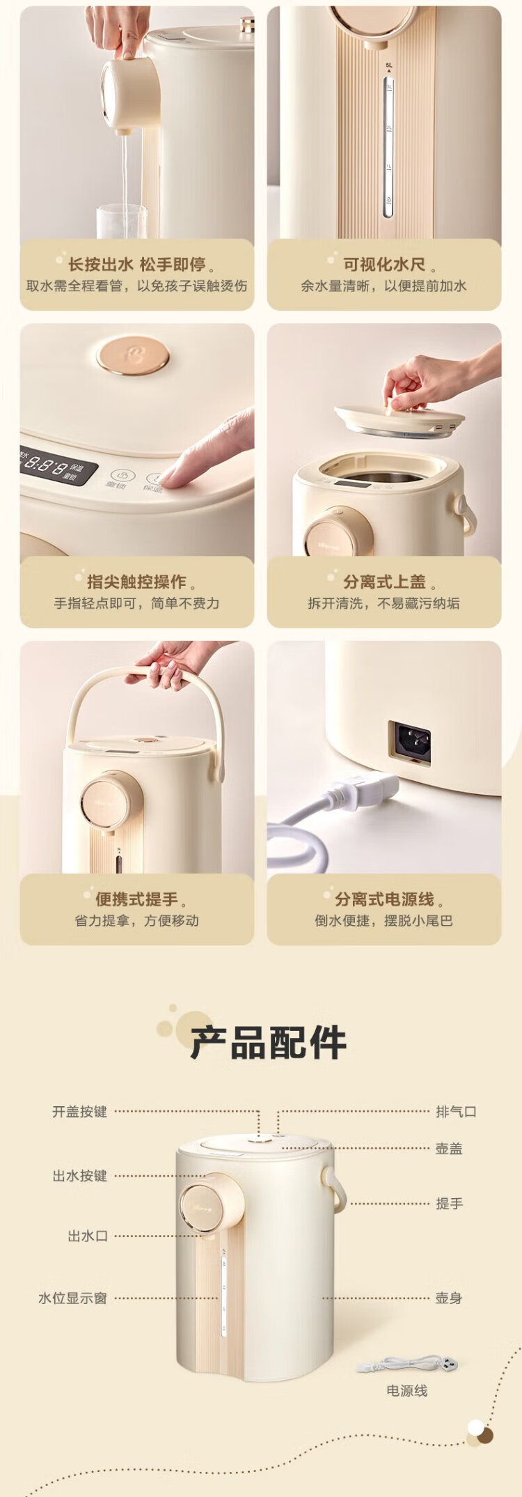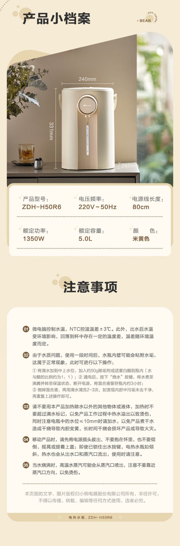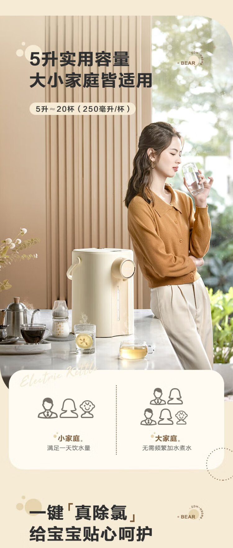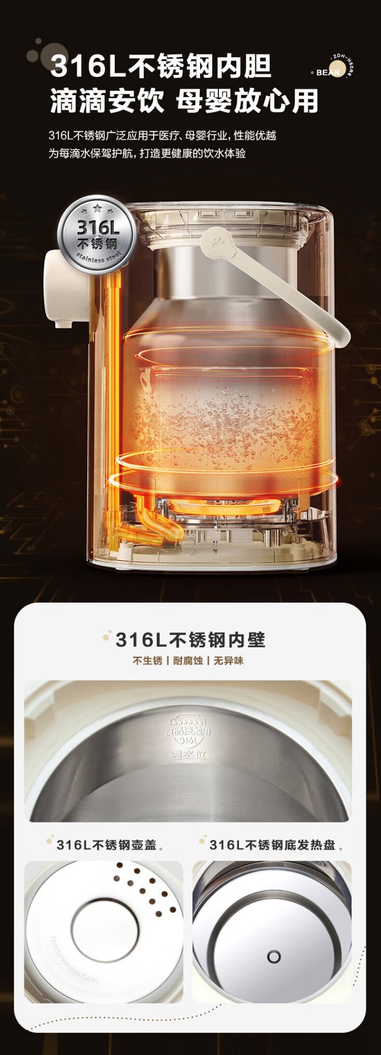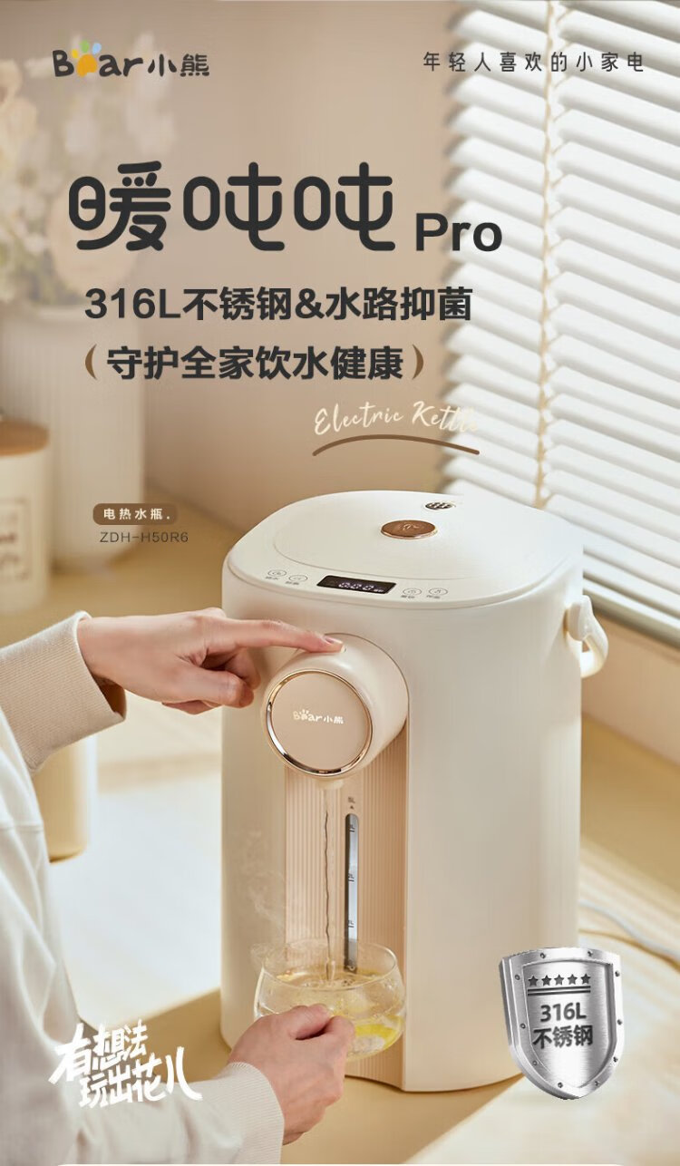 Bear (Bear) thermostatic kettle all-in-one electric kettle anti-scalding and dechlorination electric kettle 316L kettle multi-stage insulation 5L electric kettle heating tons ZDH-H50R6