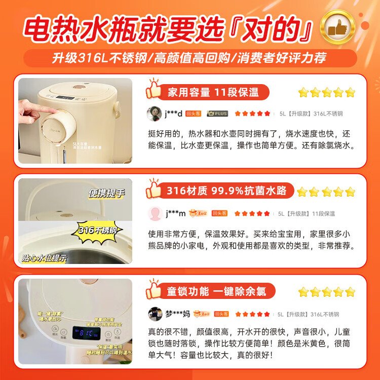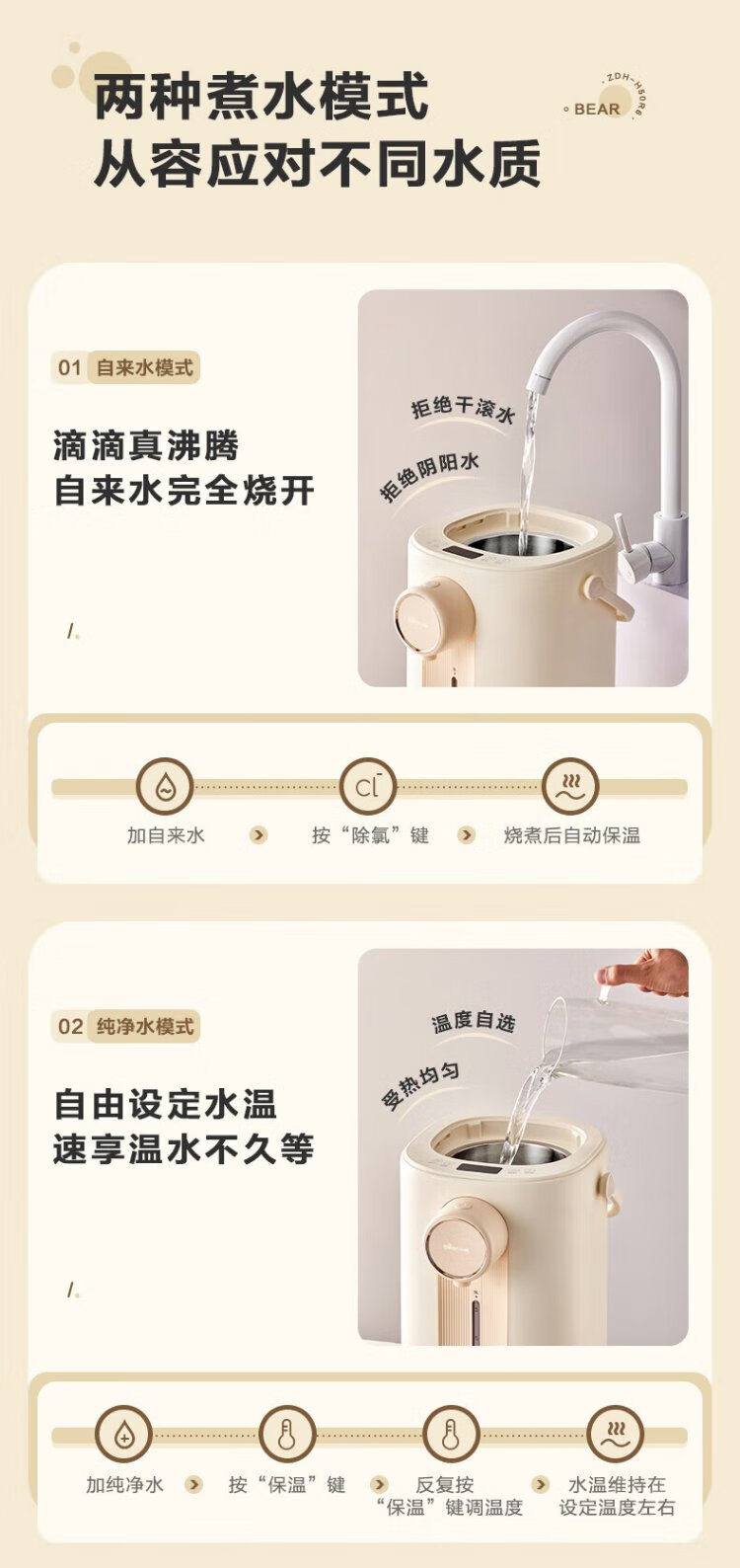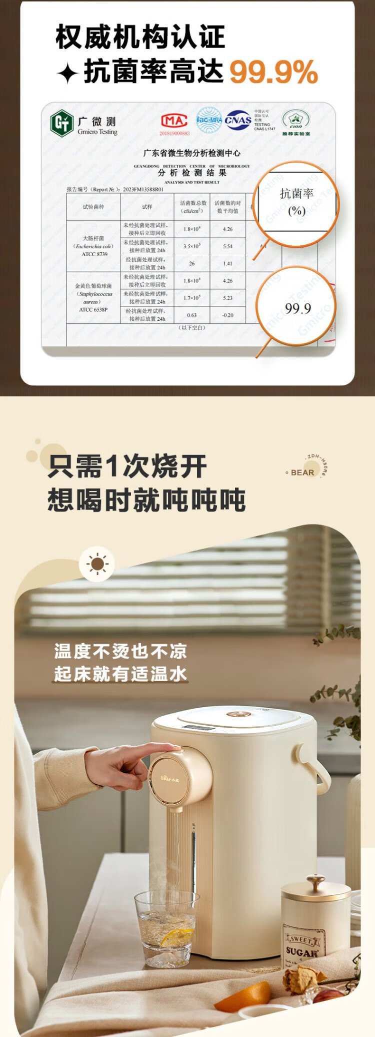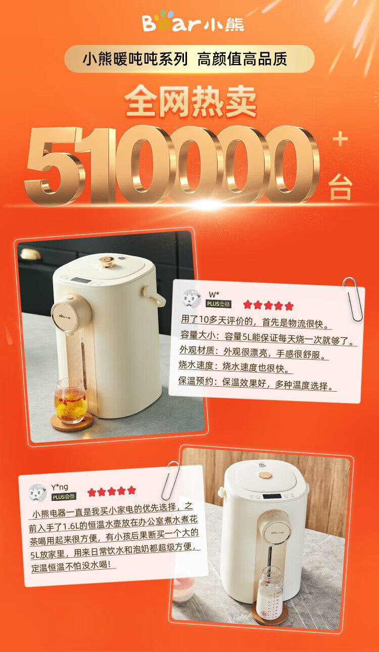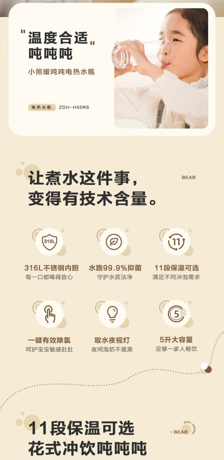 Bear (Bear) thermostatic kettle all-in-one electric kettle anti-scalding and dechlorination electric kettle 316L kettle multi-stage insulation 5L electric kettle heating tons ZDH-H50R6