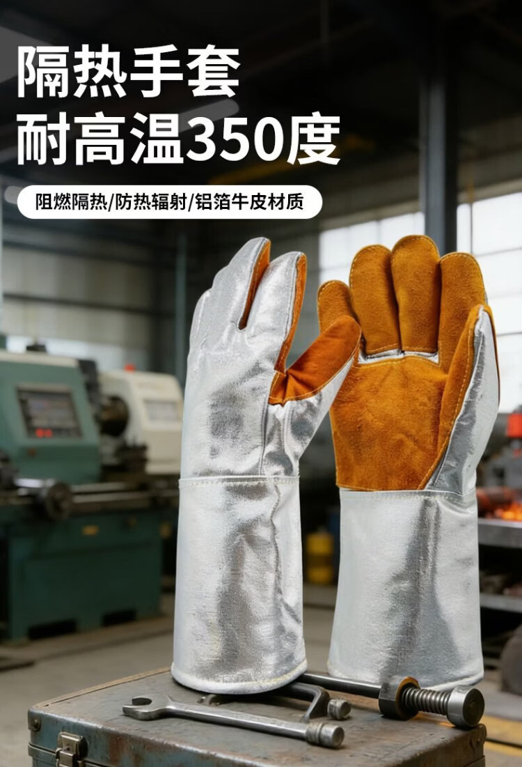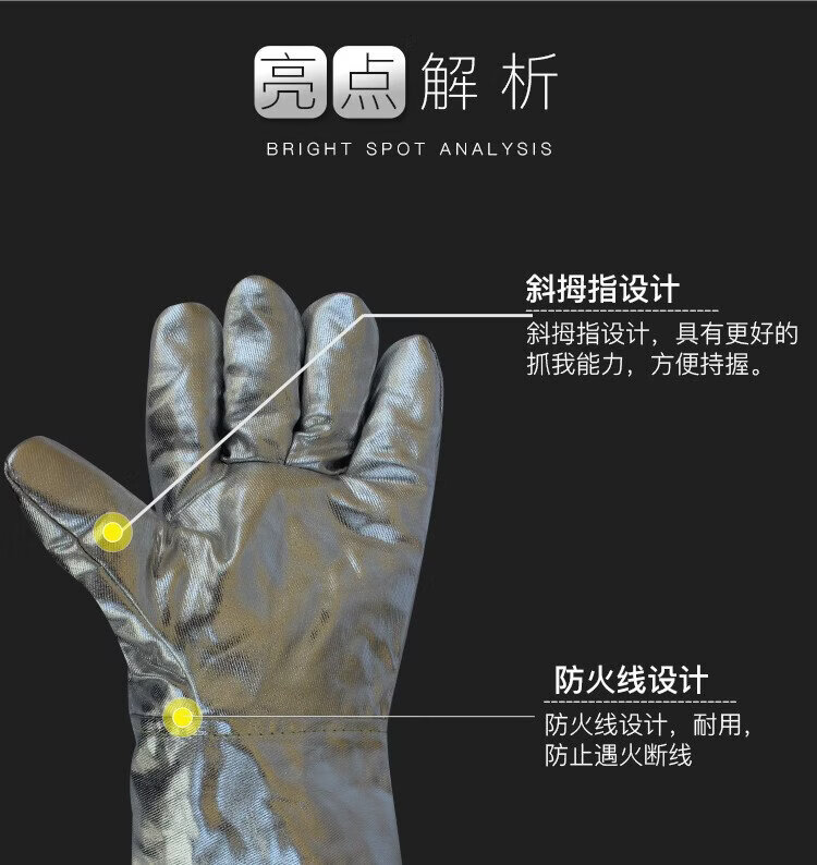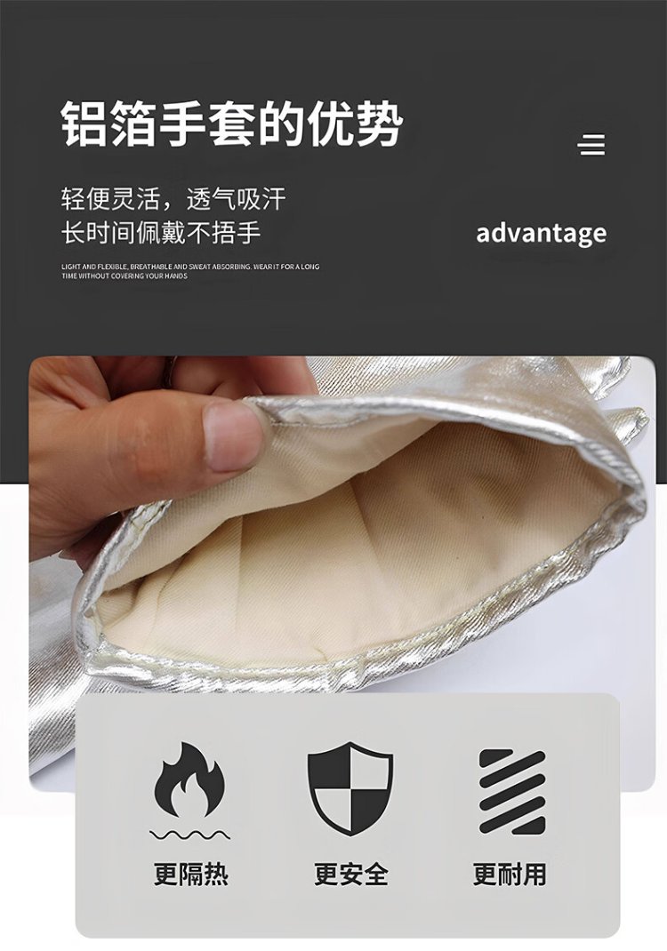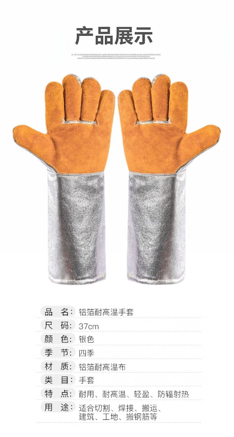 Beifote anti-scalding gloves, aluminum foil anti-scalding, high temperature resistant gloves, heat insulation, flame retardant, smelting, fire protection, fire retardant gloves, silver