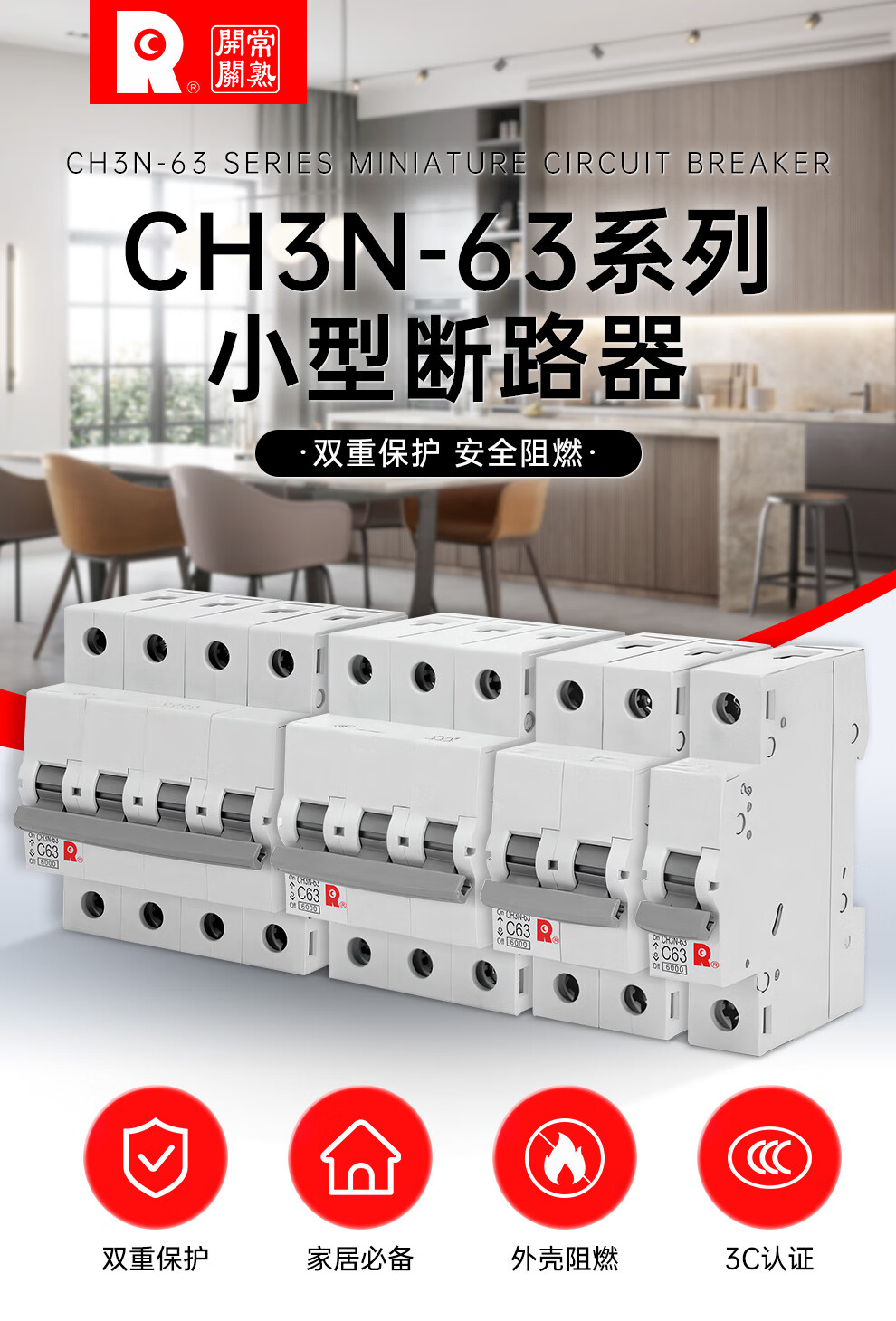 Changshu Switch Factory Air switch CH3N series 1P 16A Type C 6kA CH3N-63C16/1丨C0224601