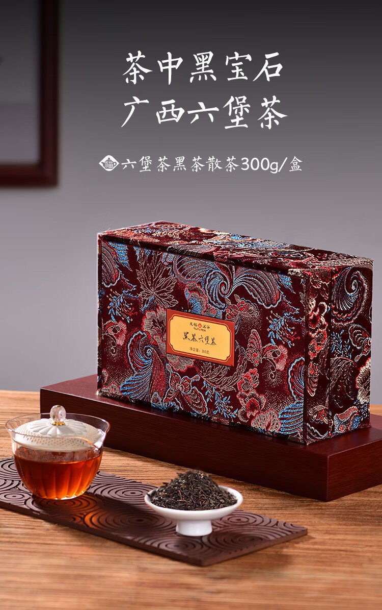 Tianfu Tea Dark Tea Guangxi Liubao Tea Wuzhou Dark Tea 300g Gift Box Loose Tea Tea Gift