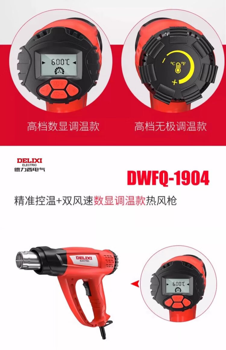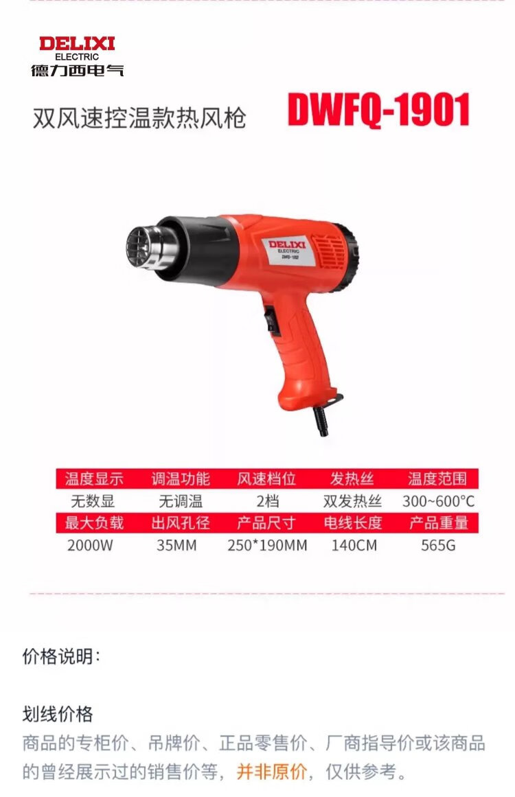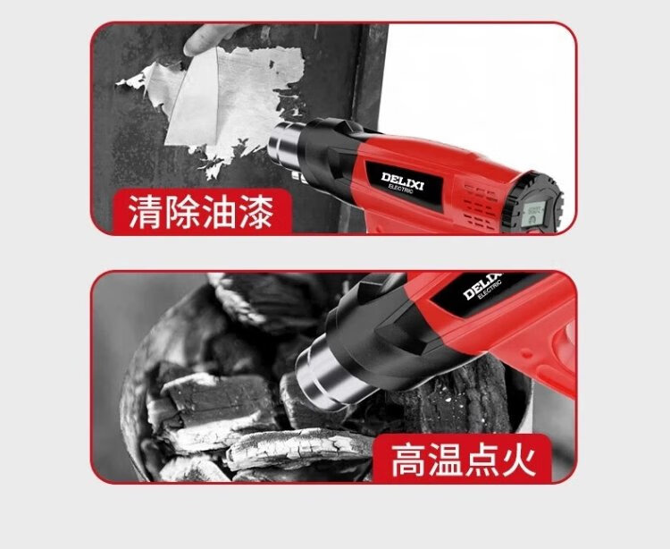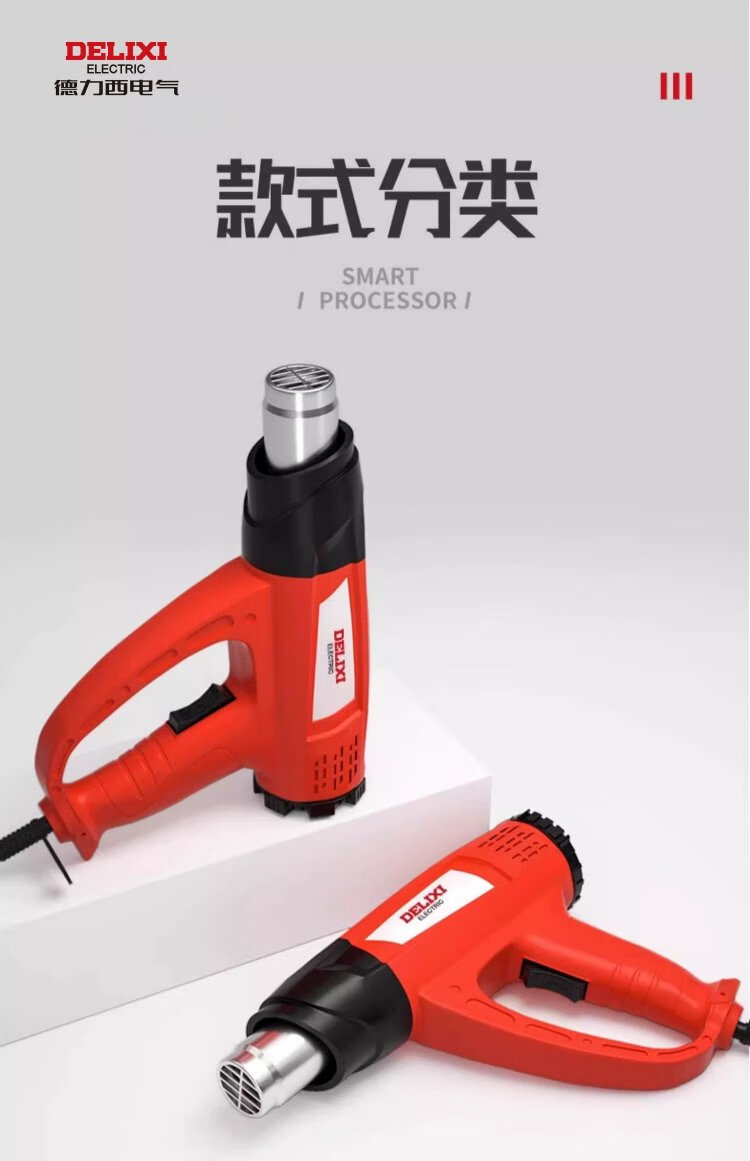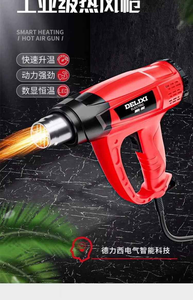Delixi hot air gun film baking gun industrial high temperature hair dryer heated hair dryer portable baking gun 2000W two gears