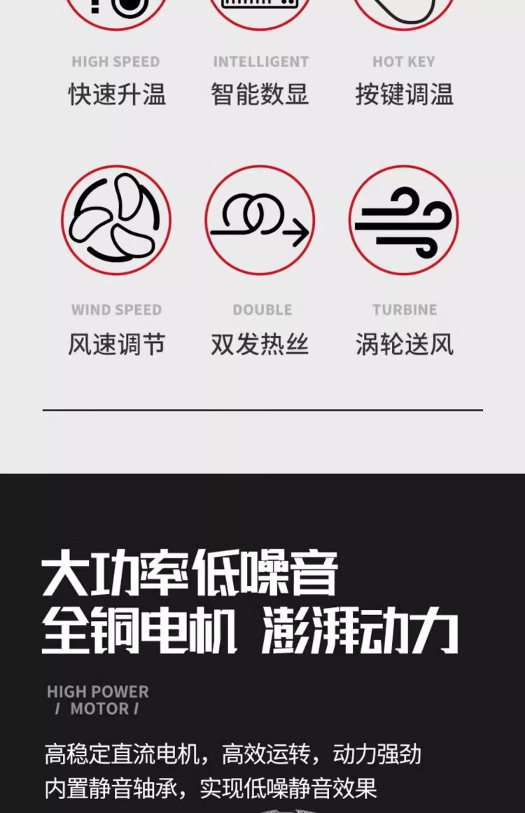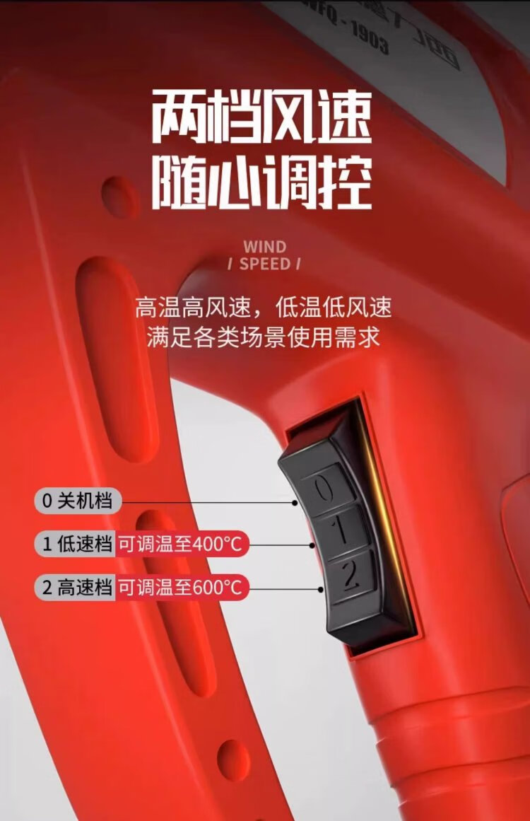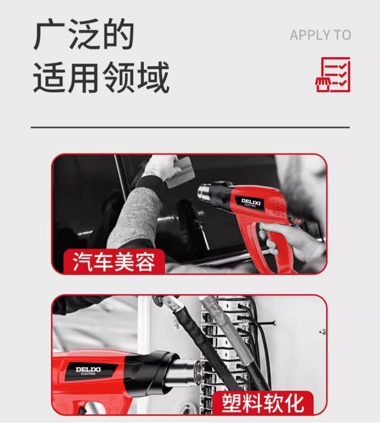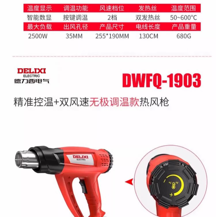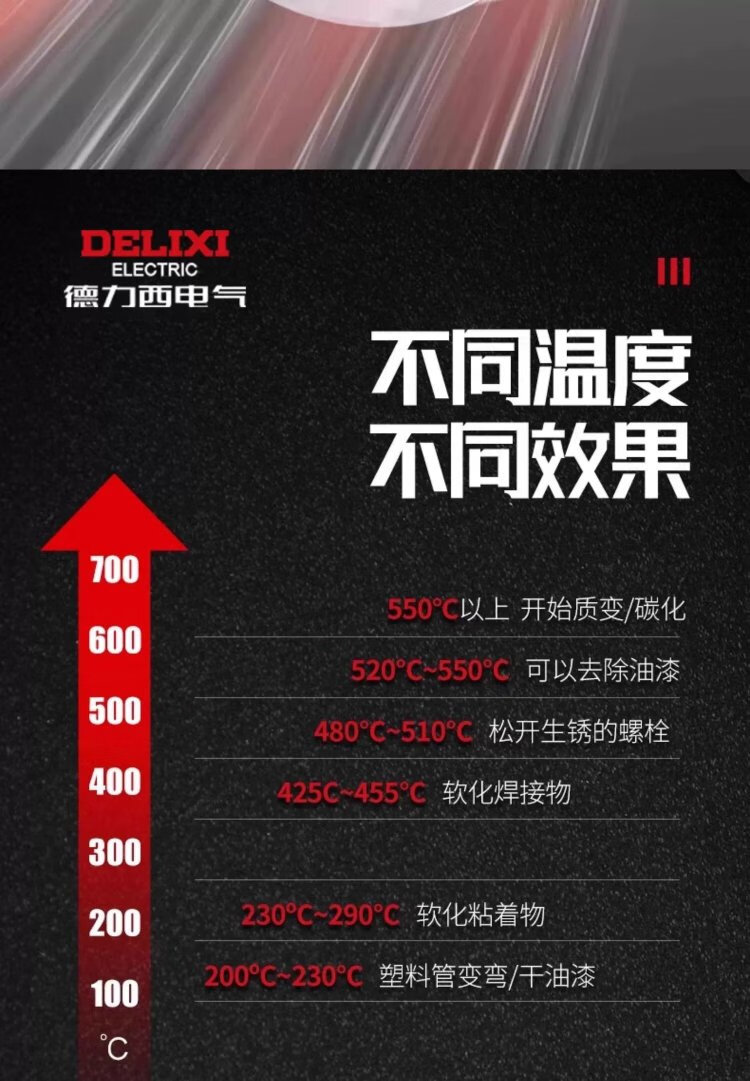 Delixi hot air gun film baking gun industrial high temperature hair dryer heated hair dryer portable baking gun 2000W two gears