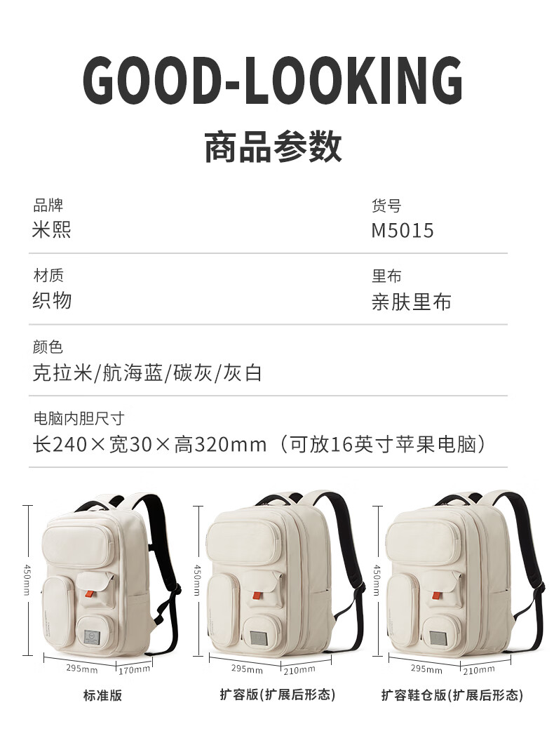 Mixi travel bag large capacity 15.6 inches laptop bag backpack men's backpack female student school bag