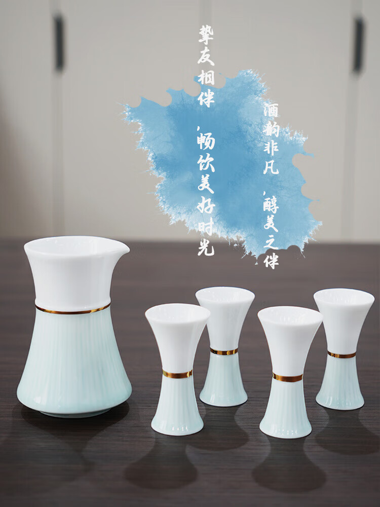 Su's Ceramics Ceramic Wine Set White Wine Cup Wine Divider Sky Blue Wine Set Best Friend 1 Pot 4 Cups Exquisite Gift Box