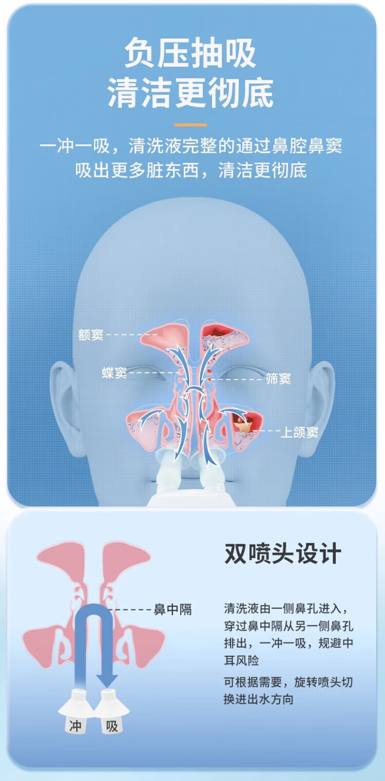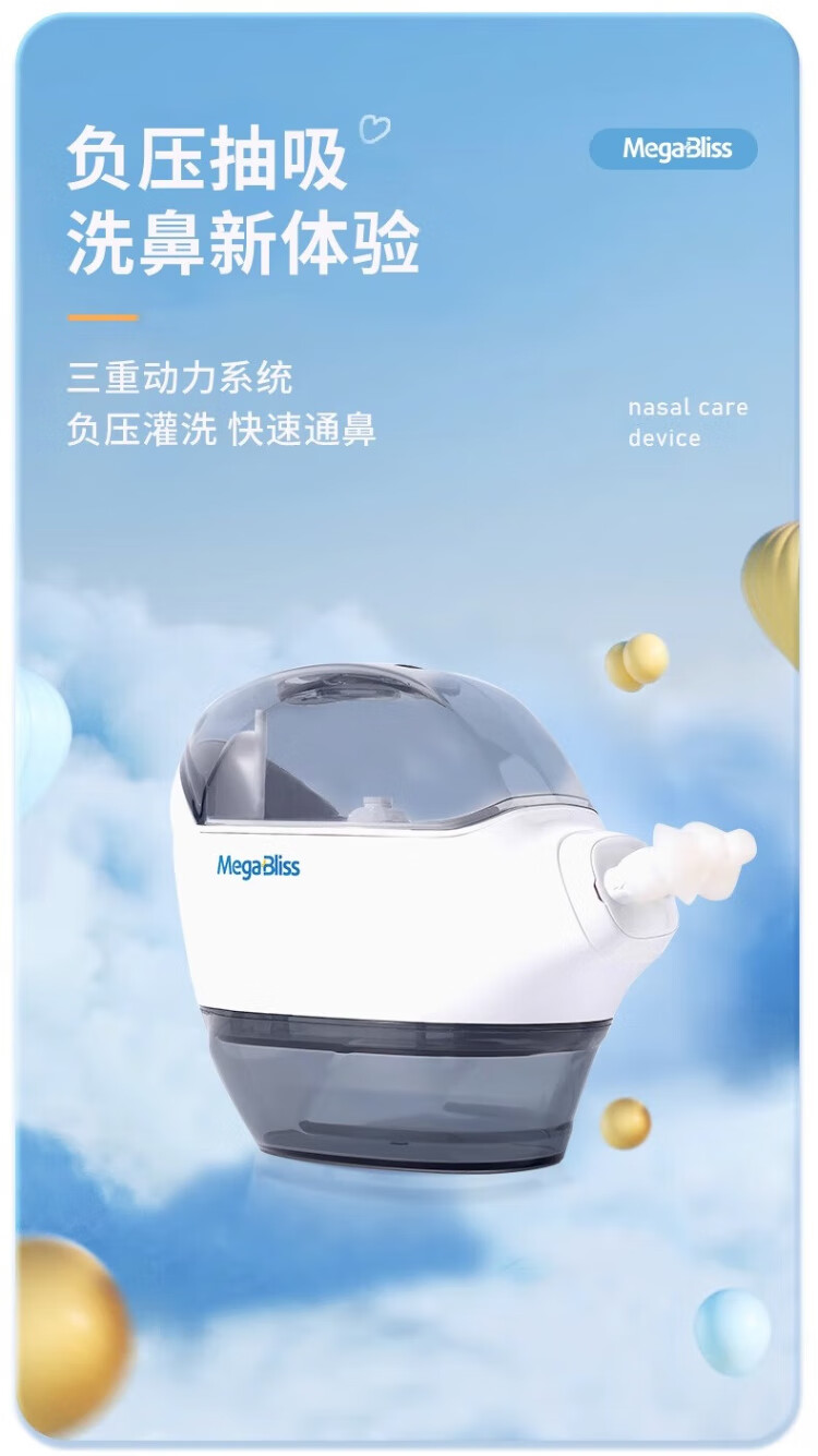 MegaBliss Negative pressure nasal washer electric double-head lavage for adults and children household rhinitis nasal congestion nasal cleaner