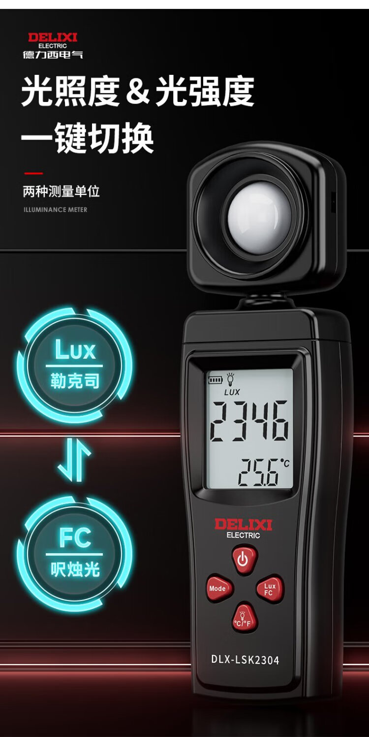 Delixi Electric integrated illuminance meter household light meter high-precision lumen tester luminance meter illuminance tester