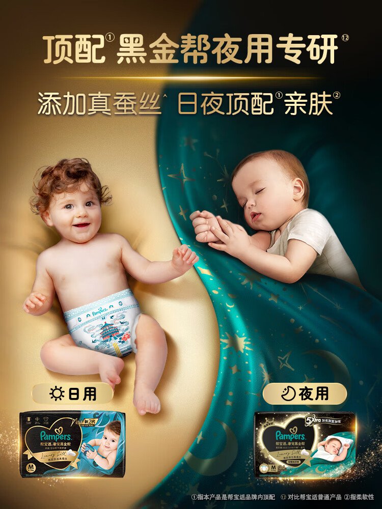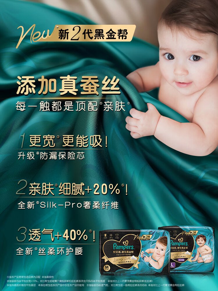 Pampers Breathable Top with Black Gold Pull-Up Pants Newborn Baby Diaper Added Real Silk XXXL40
