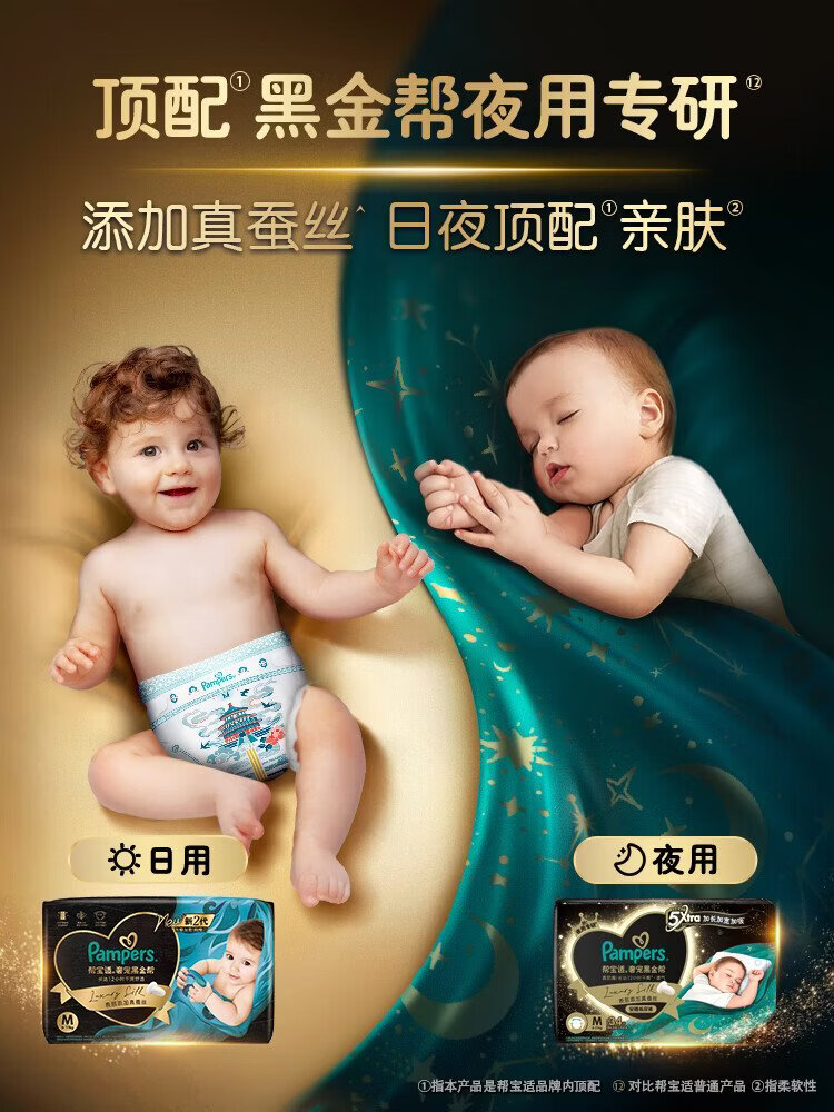 Pampers Breathable Top with Black Gold Pull-Up Pants Newborn Baby Diaper Added Real Silk XXL40+2