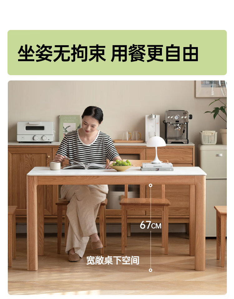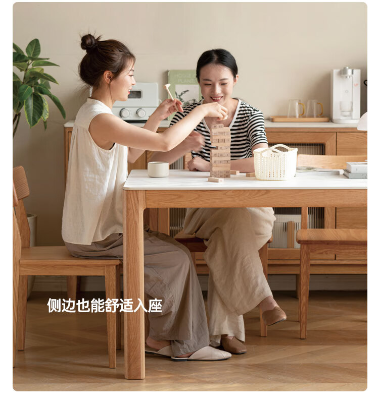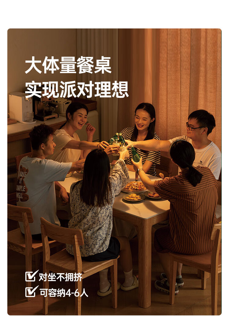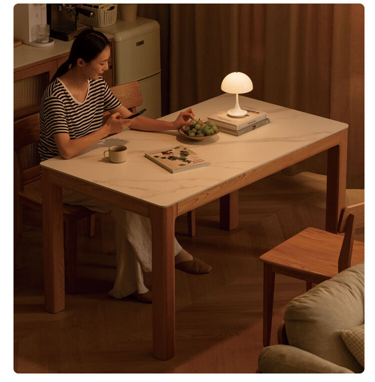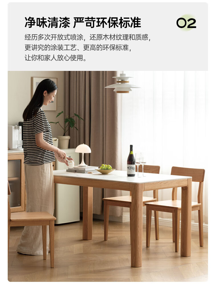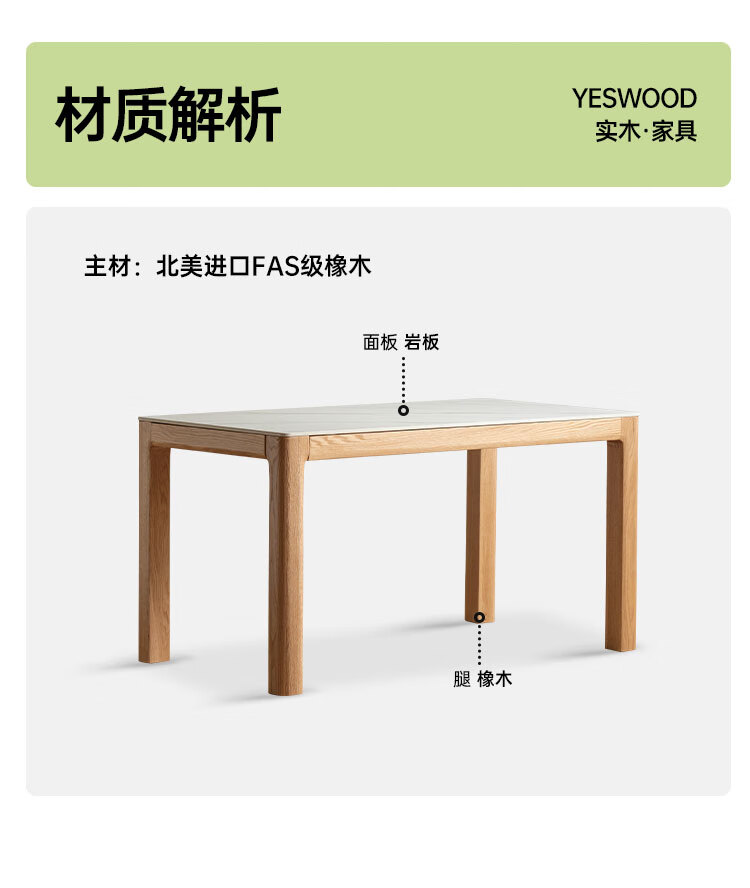 Genji Muyu solid wood slate dining table small apartment restaurant table Nordic simple dining table log style 1.4m+4 dining chairs Jingxiangjia