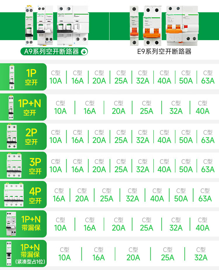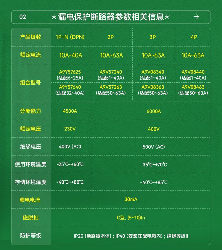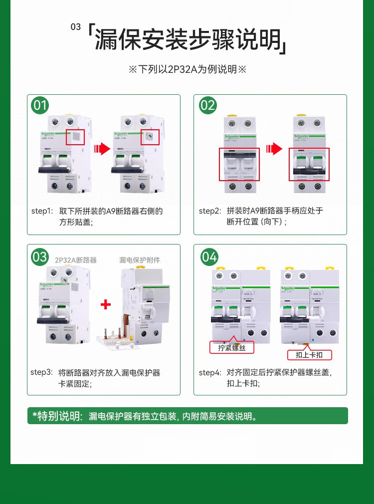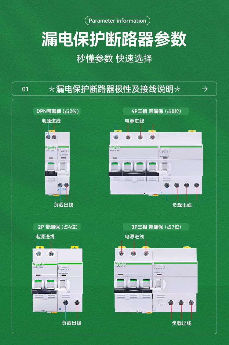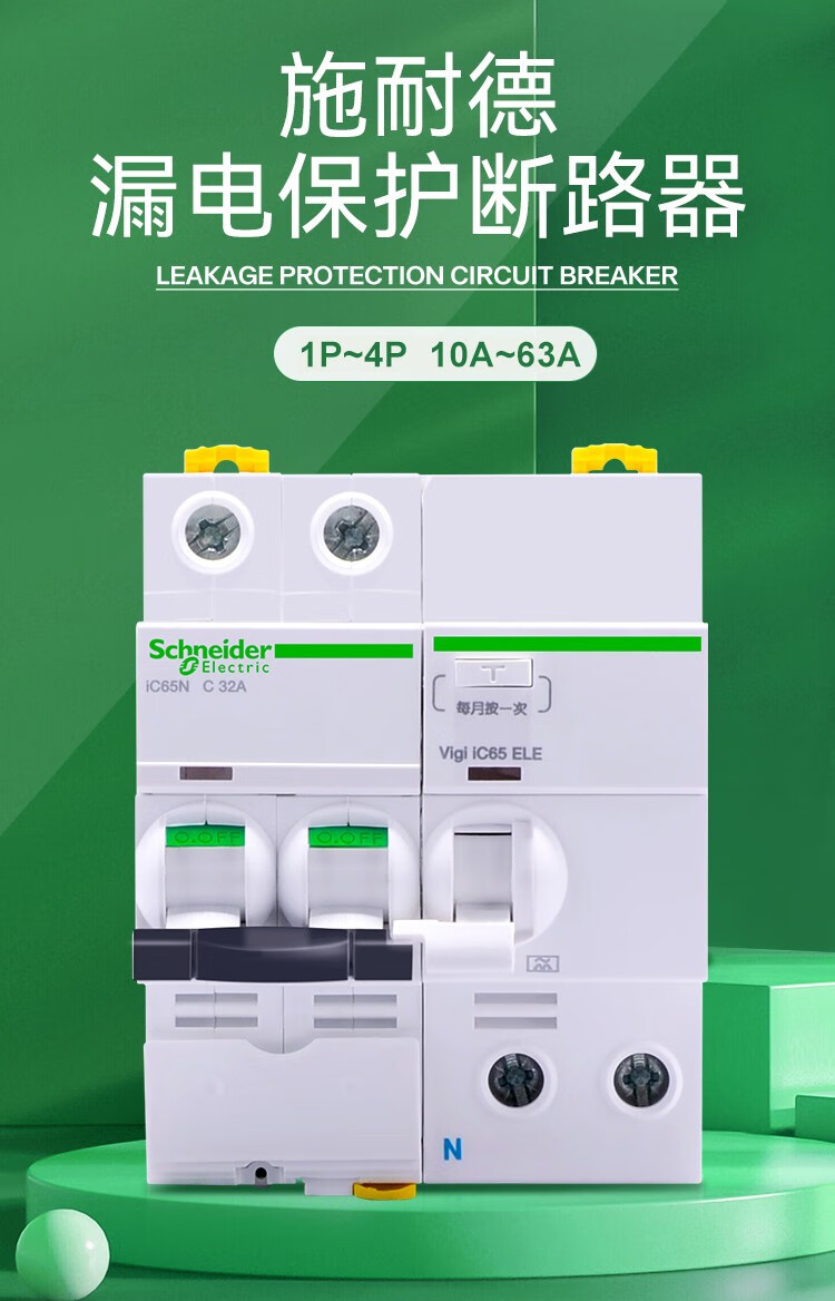 Schneider leakage protection switch A9 series iC65N circuit breaker with leakage protection 2P 63A main switch leakage protection air switch