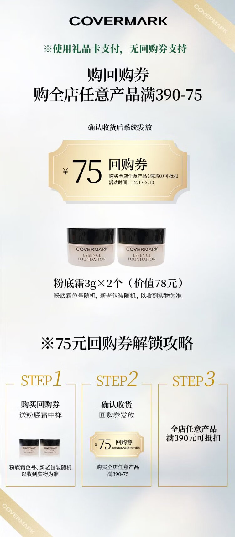 COVERMARK foundation cream covers blemishes and does not stick. Powder sunscreen color B+Y random 3g*2 test color pack free repurchase coupon