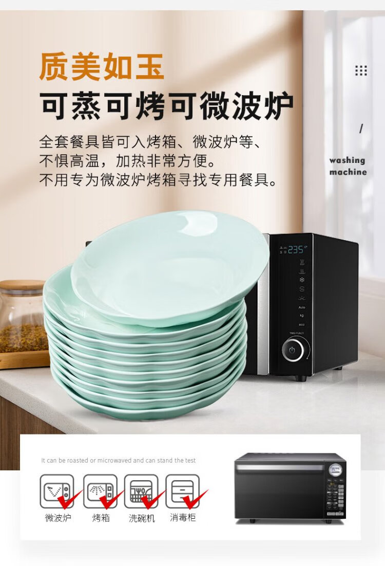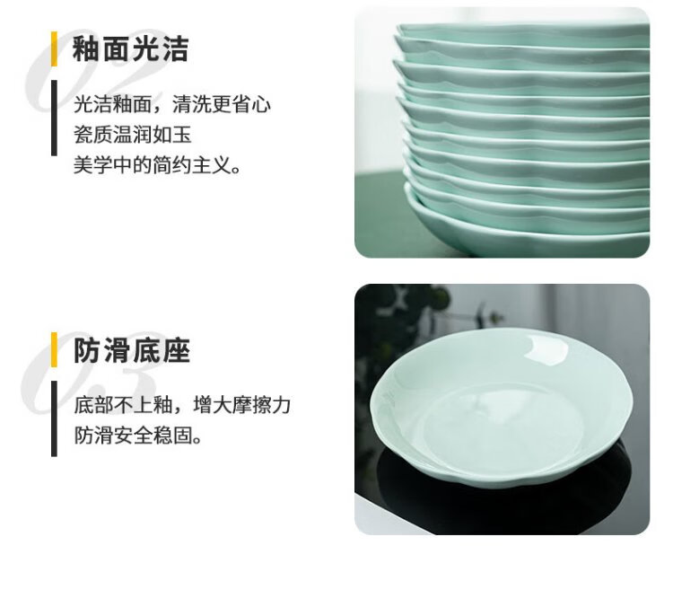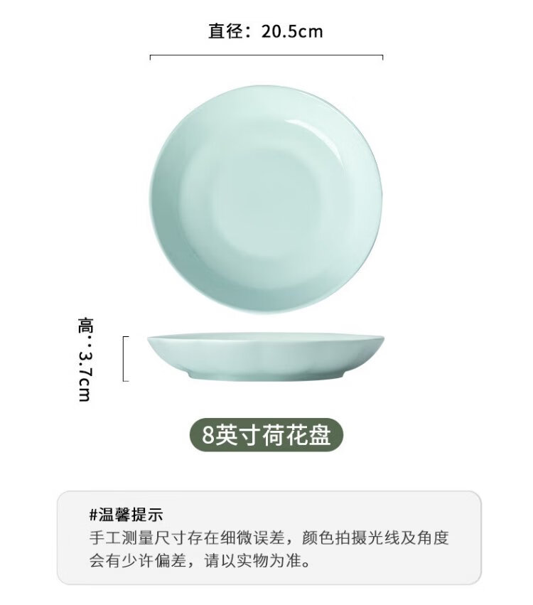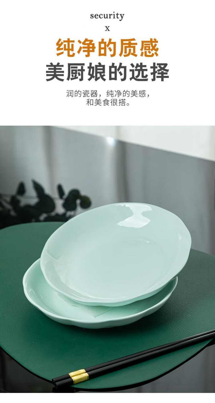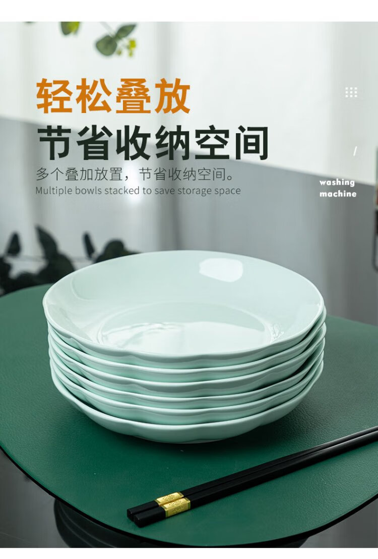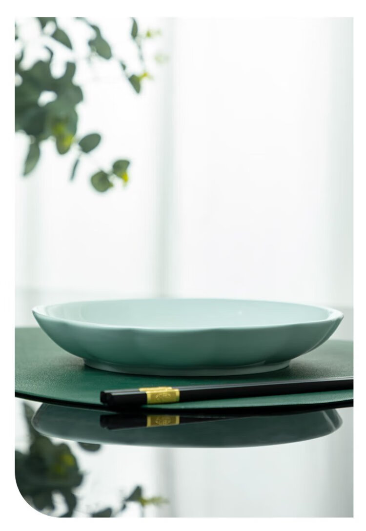 Tao Xianghui plate ceramic home deep plate 4 sets microwave dinner plate rice plate soup plate 8-inch dish shadow celadon plate