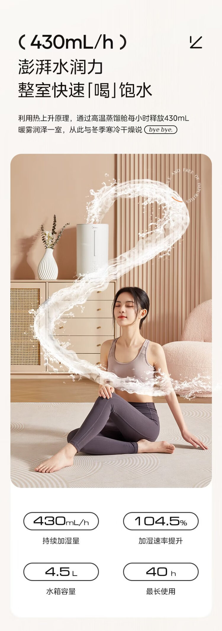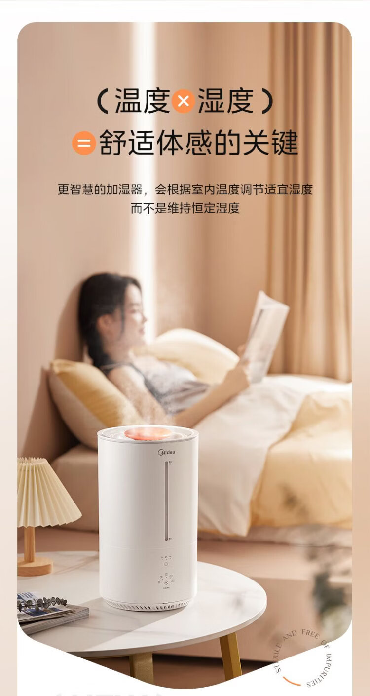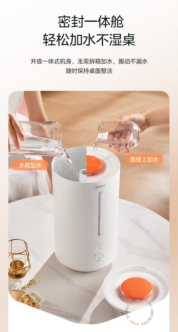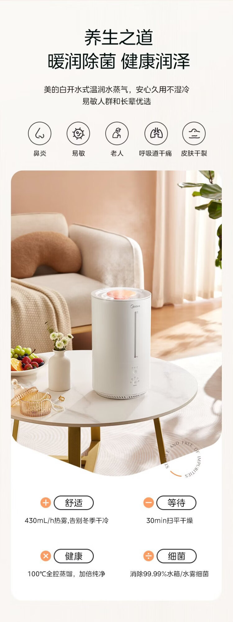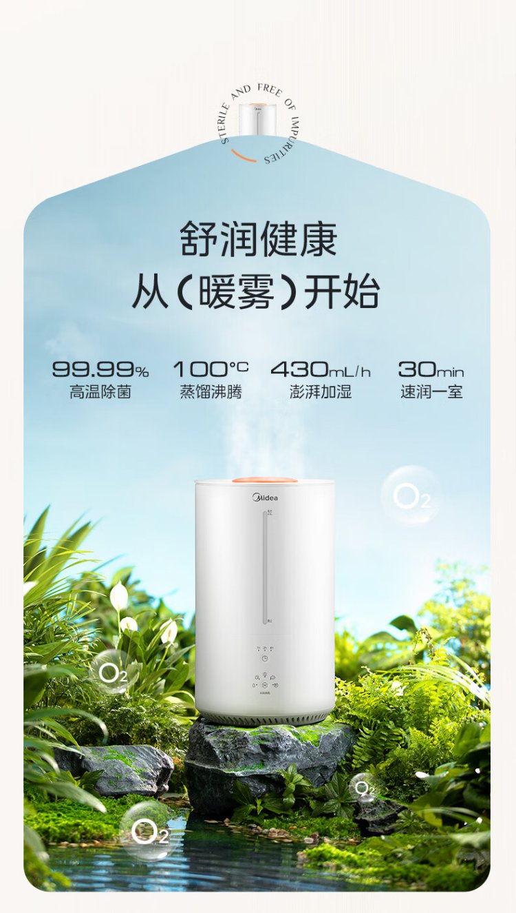 Midea Thermal Evaporative Air Humidifier Home Bedroom Living Room Rhinitis Large Capacity Living Room Silent Pregnant Women Mother Infant Small Desktop Antibacterial Air Conditioning Heating New Year Gift 3R50
