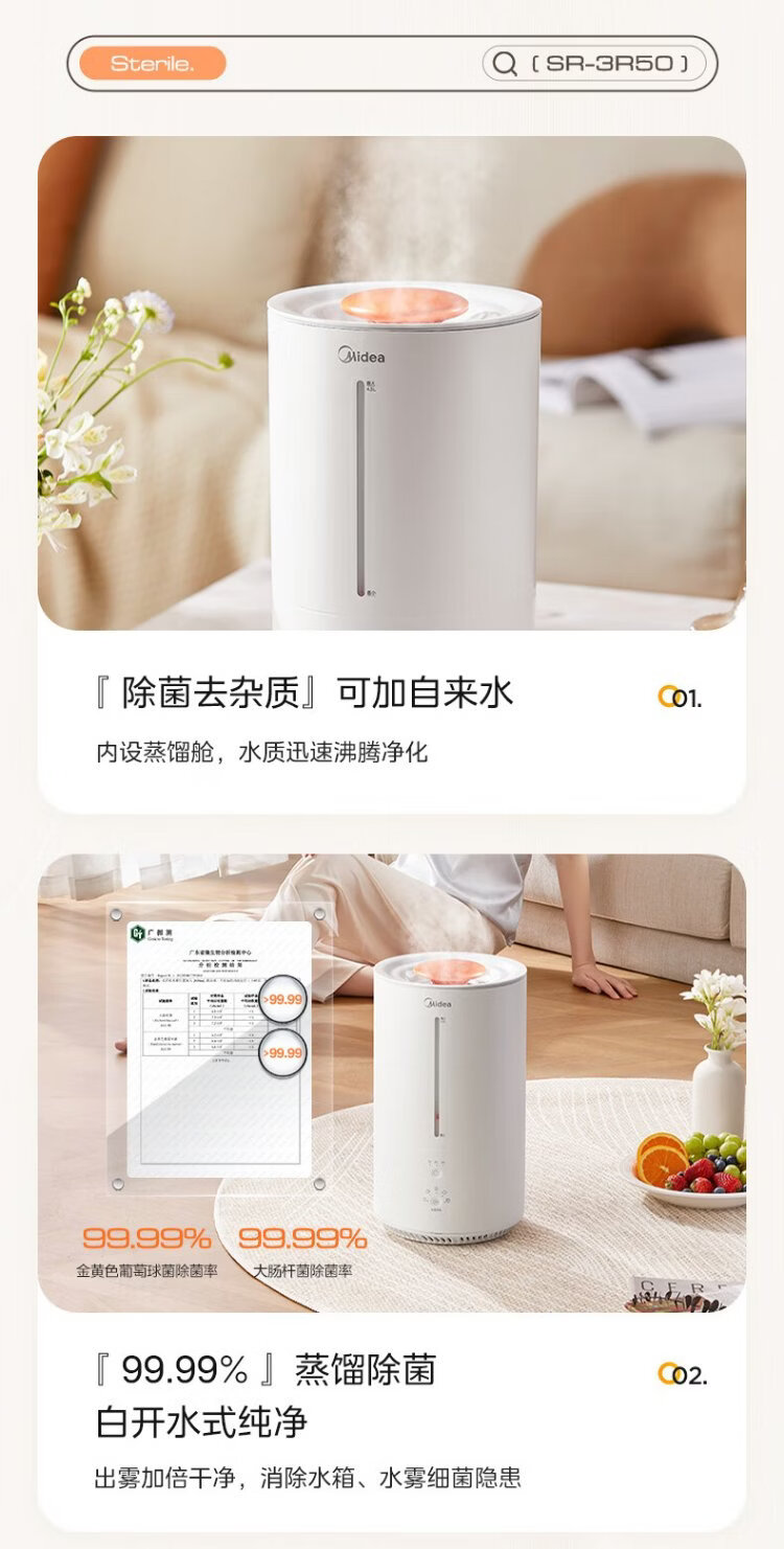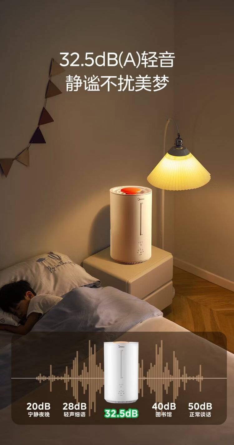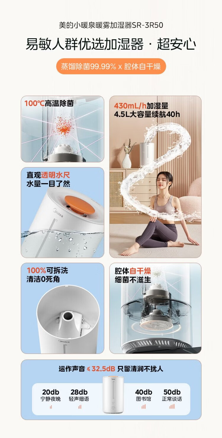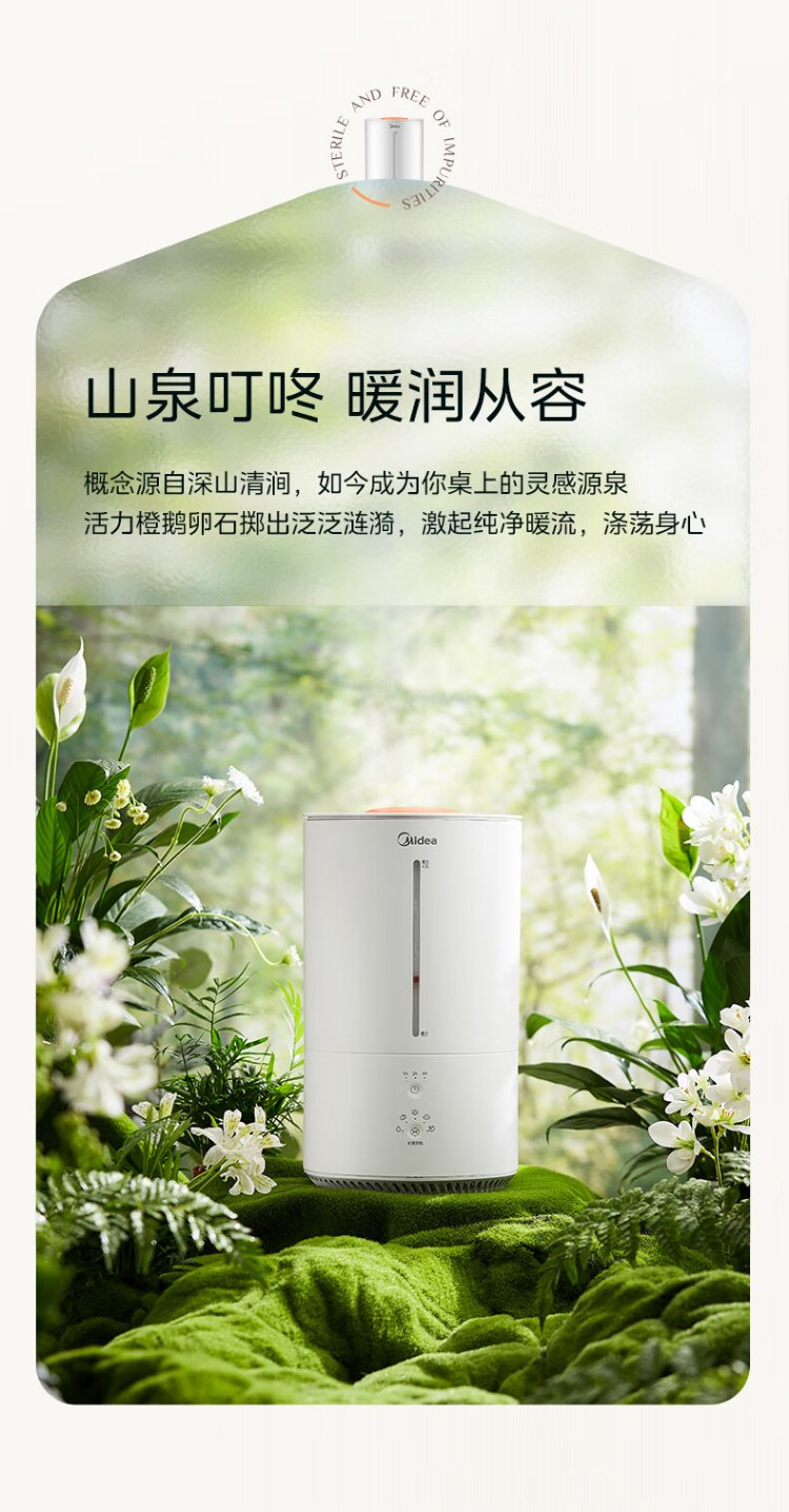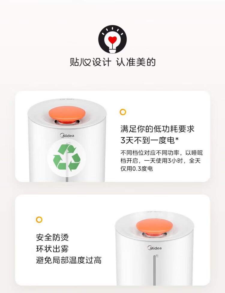 Midea Thermal Evaporative Air Humidifier Home Bedroom Living Room Rhinitis Large Capacity Living Room Silent Pregnant Women Mother Infant Small Desktop Antibacterial Air Conditioning Heating New Year Gift 3R50