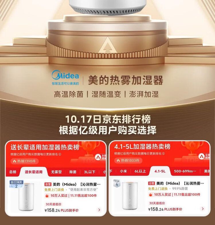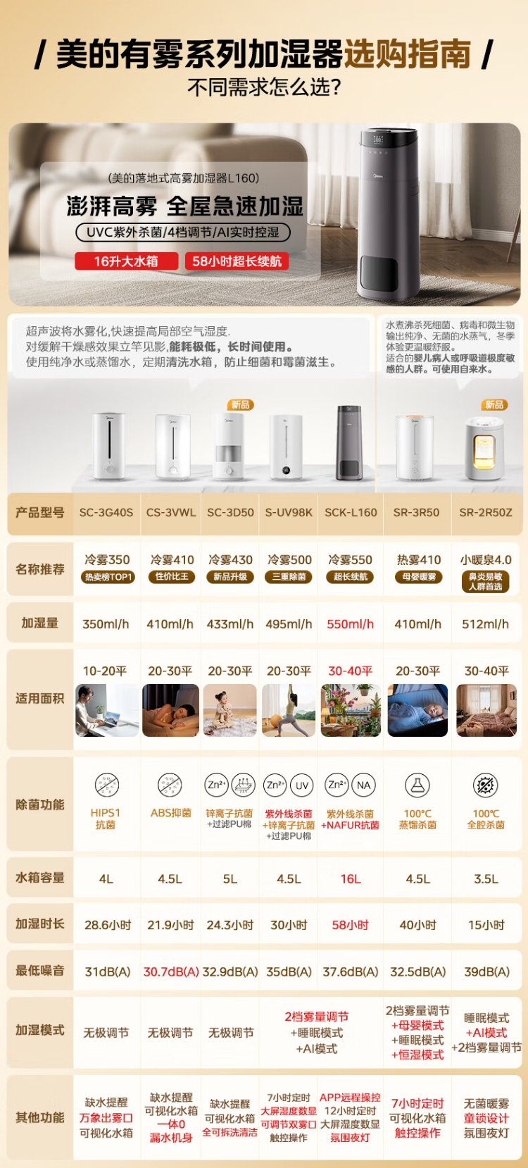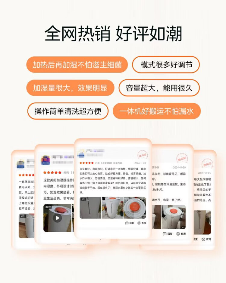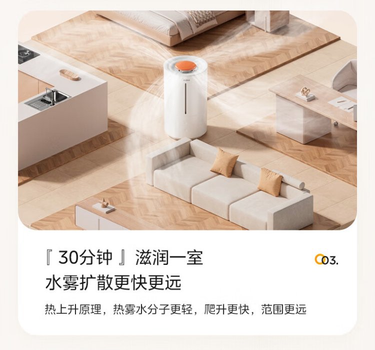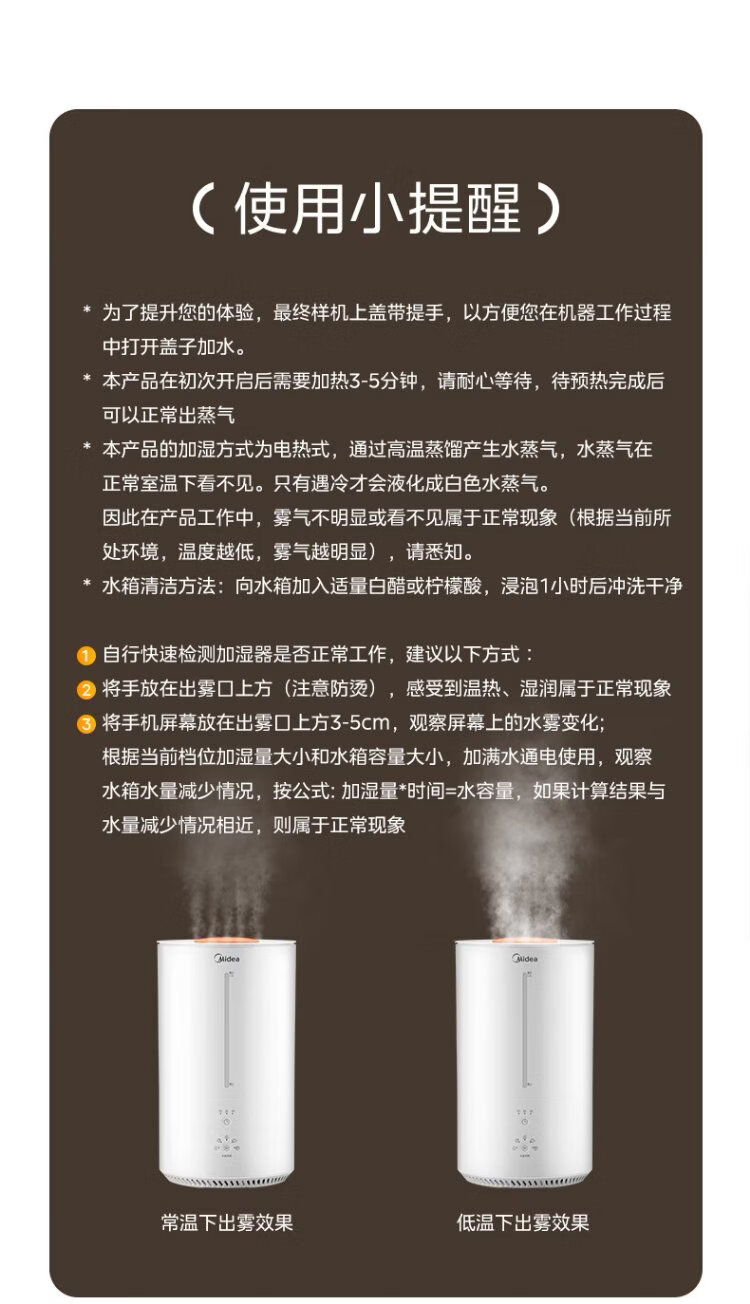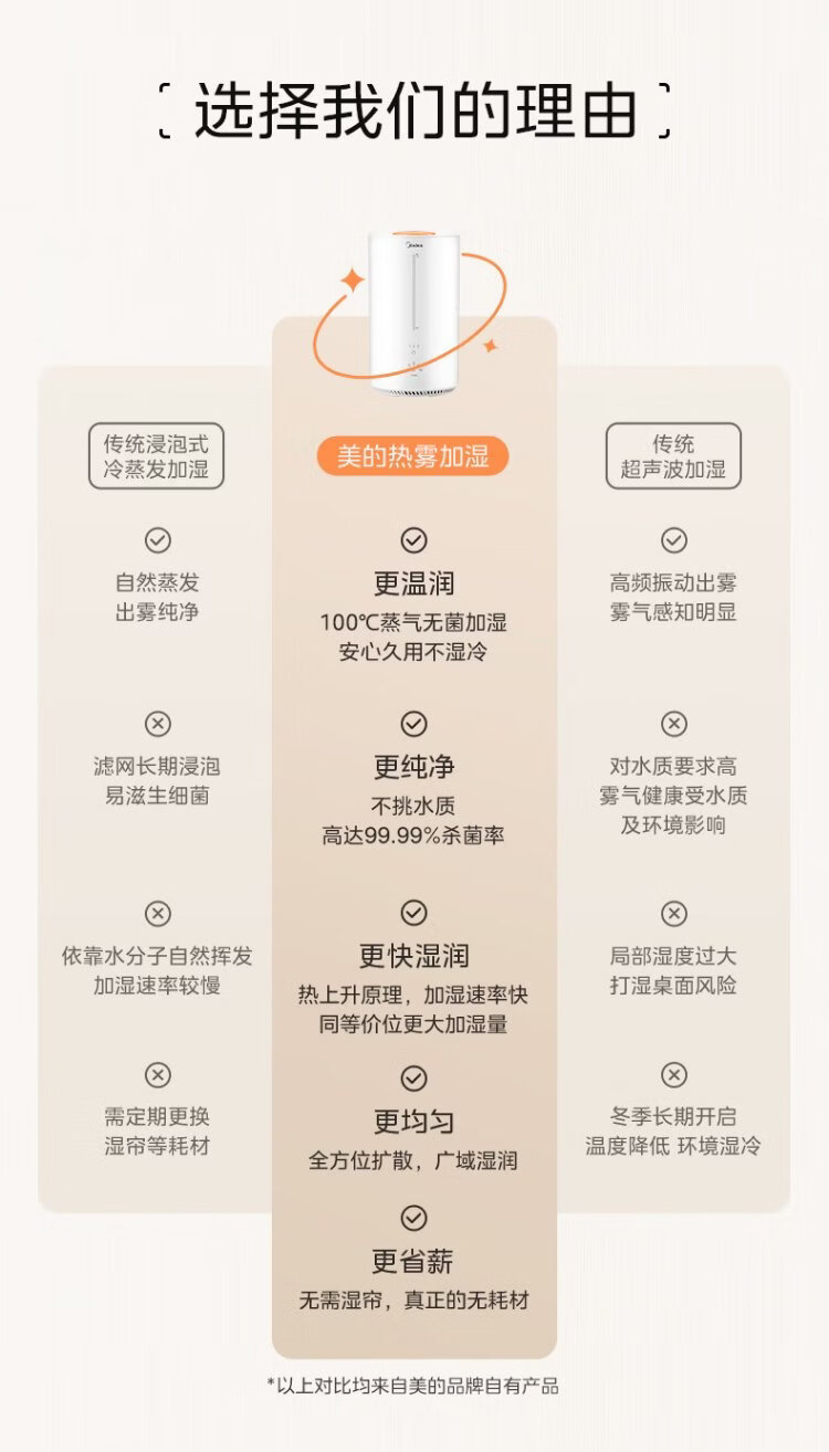 Midea Thermal Evaporative Air Humidifier Home Bedroom Living Room Rhinitis Large Capacity Living Room Silent Pregnant Women Mother Infant Small Desktop Antibacterial Air Conditioning Heating New Year Gift 3R50