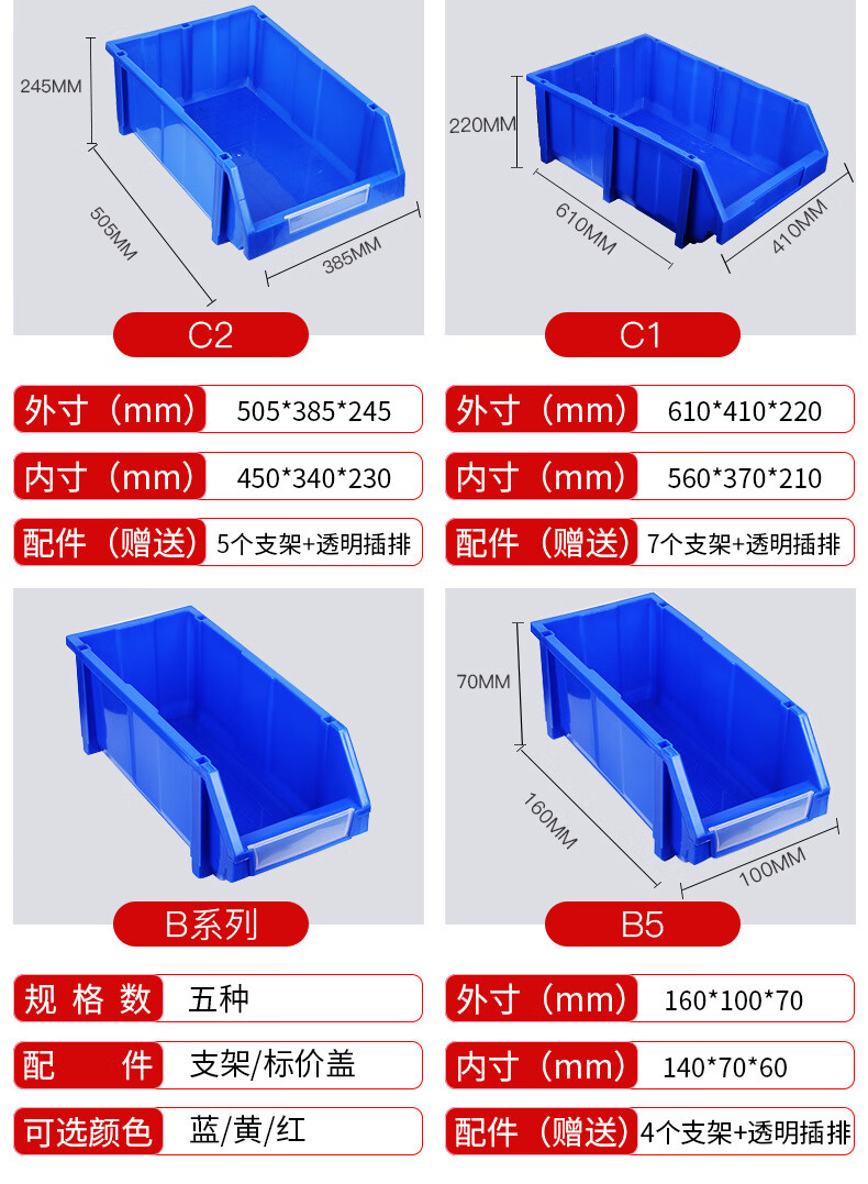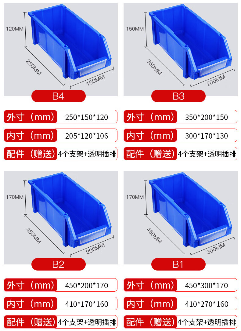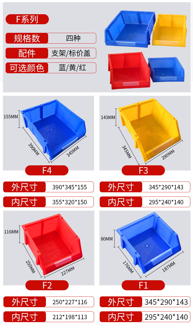 Xingyun thickened parts box F3 thickened 350*280*150 parts storage box warehouse storage shelf hardware screw accessories component oblique mouth material box