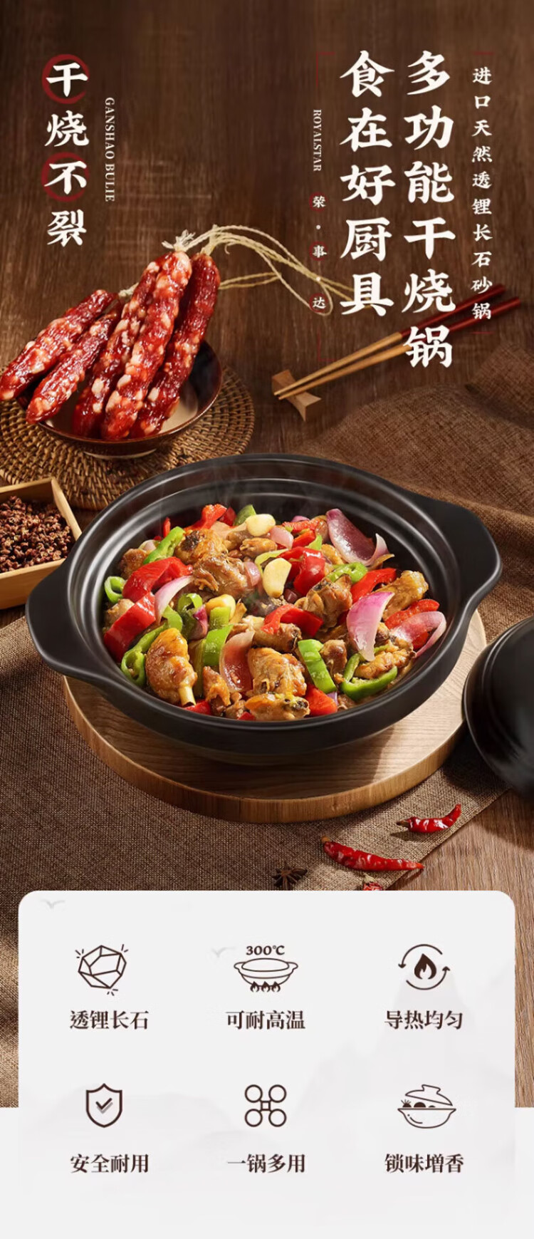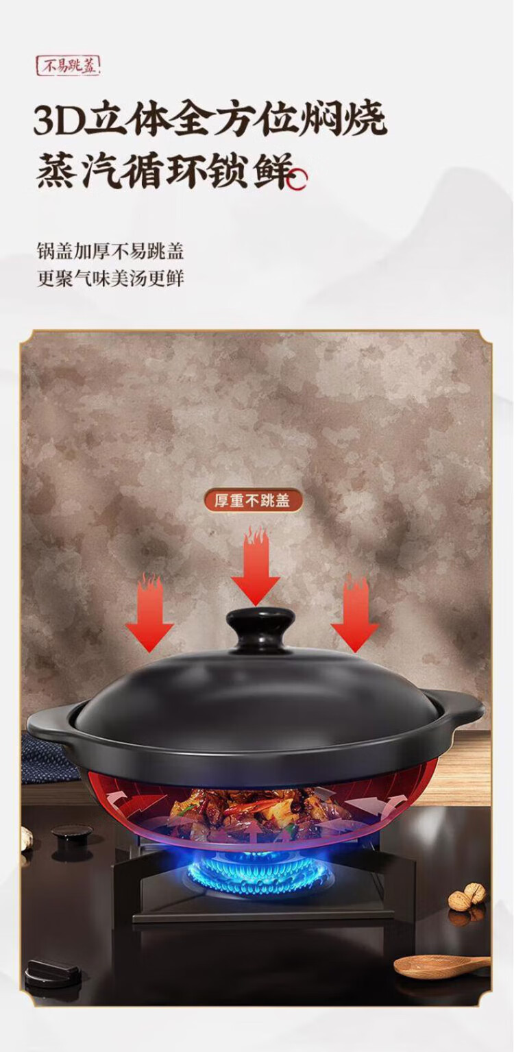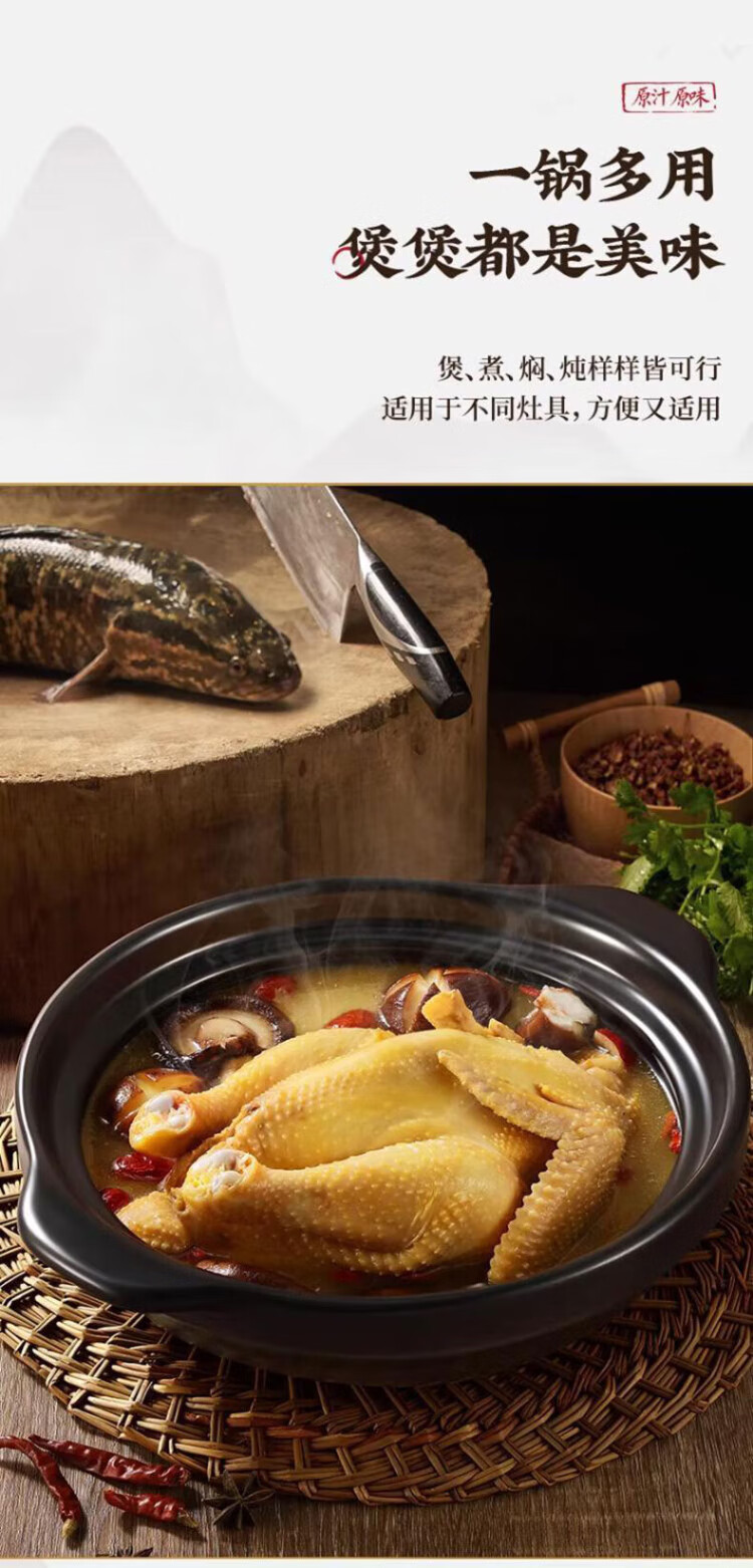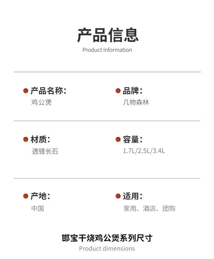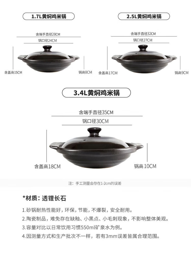 Jiwu Forest Claypot Rice, Yellow Braised Chicken, Ceramic Soup and Stew Casserole, Wide Mouth Casserole, High Temperature Resistant, Dry Burning, No Crack, 2.5L