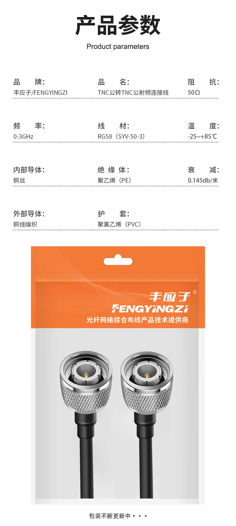 Fengyingzi TNC male to TNC male RF connection cable 50-3 coaxial feeder jumper antenna extension cable 2 meters FYZ-YC145