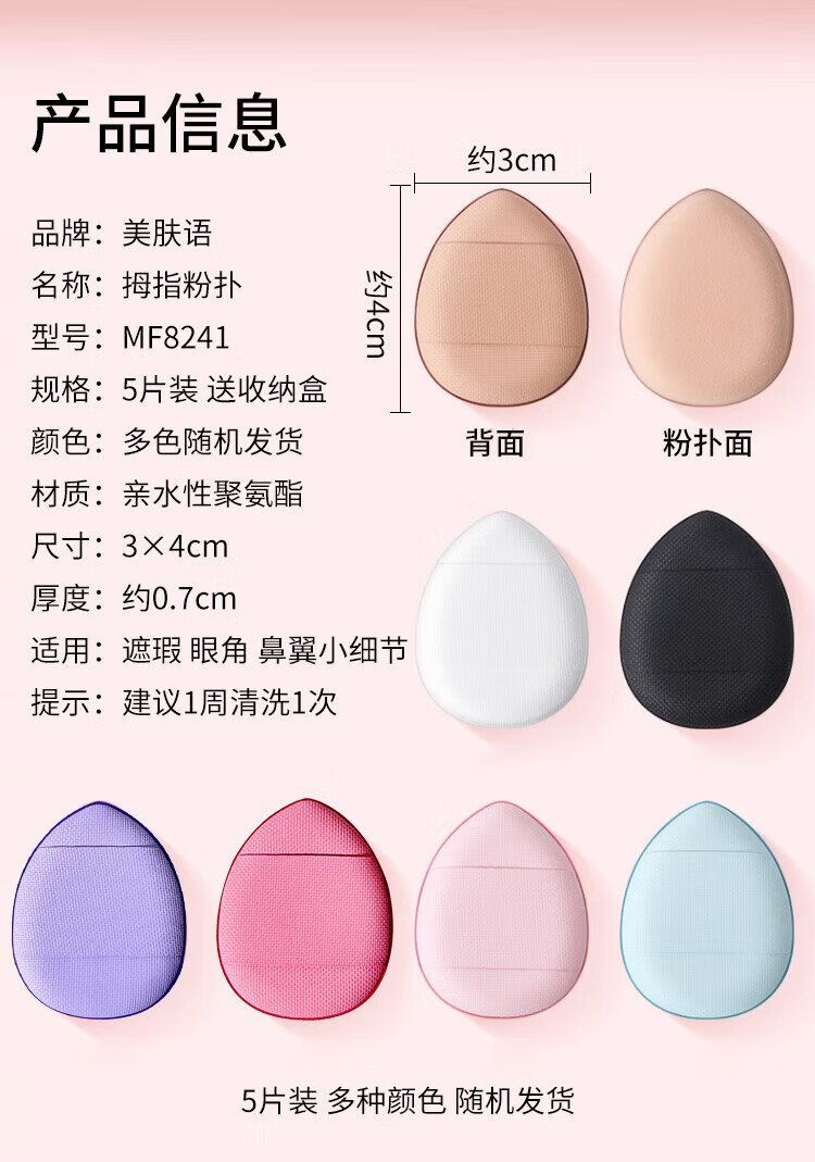 Beauty Language Thumb Powder Puff Small Concealer Cushion (5 pieces in box) Mini Fingertip Small Slippers Powder Puff MF8241
