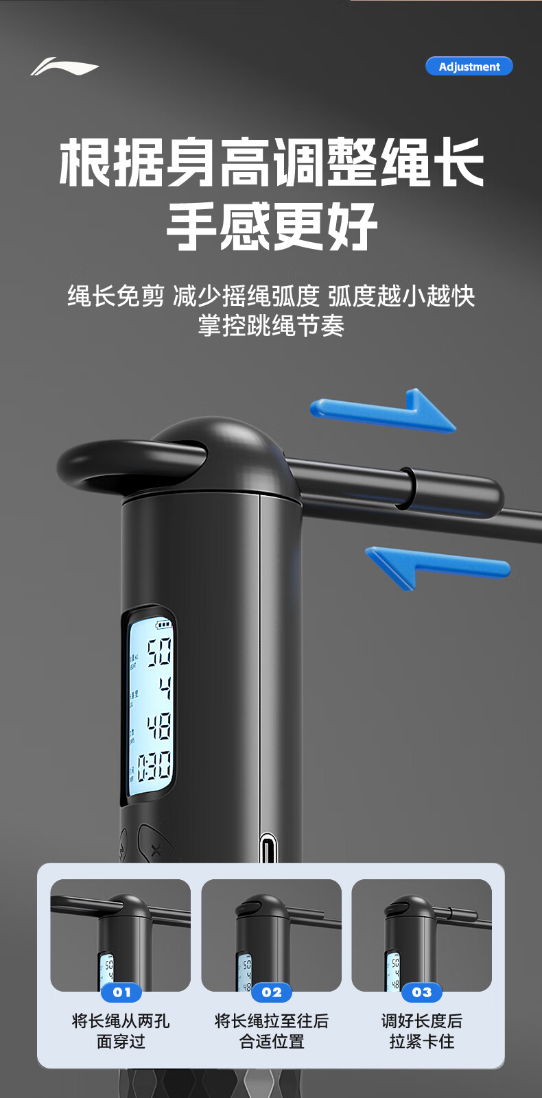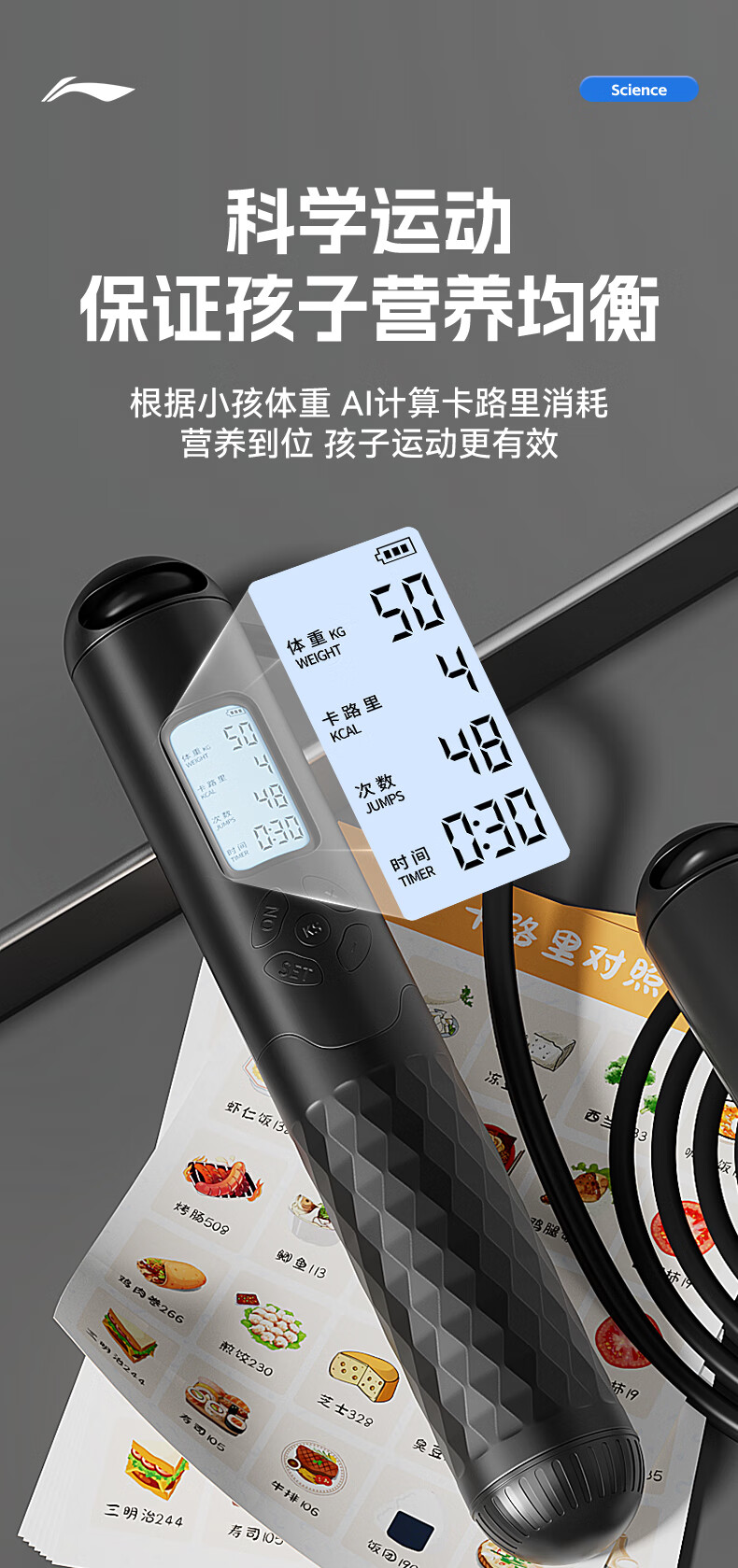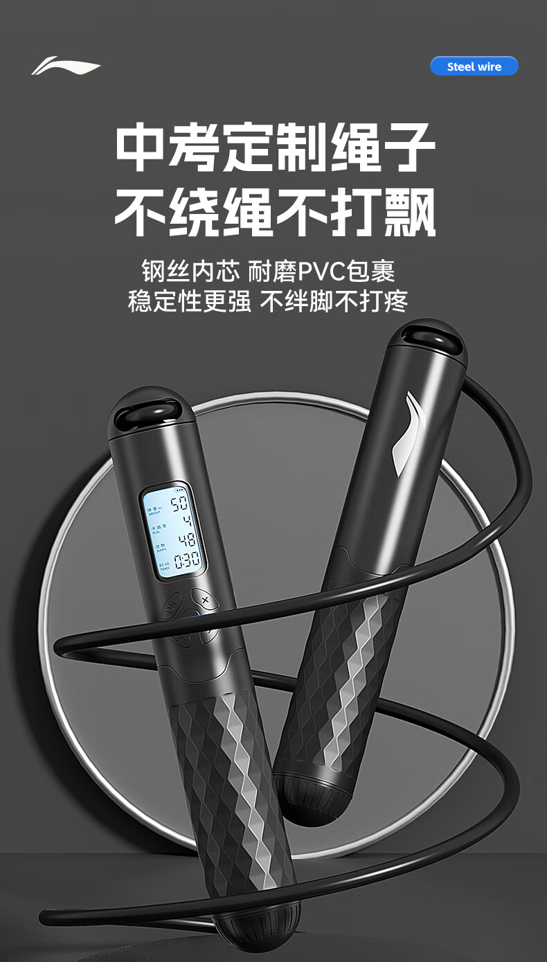 Li Ning (LI-NING) counting skipping rope, dedicated to junior high school students and students for physical examination, professional fitness wire rope for high school entrance examination
