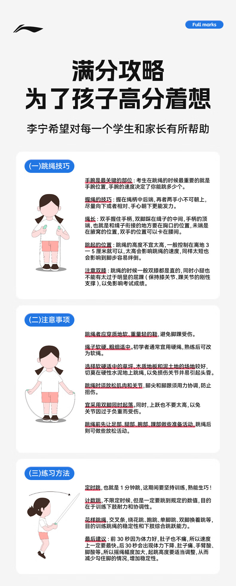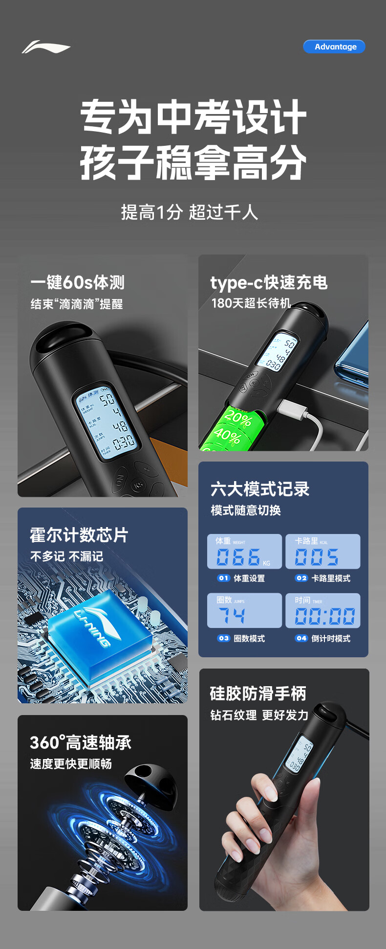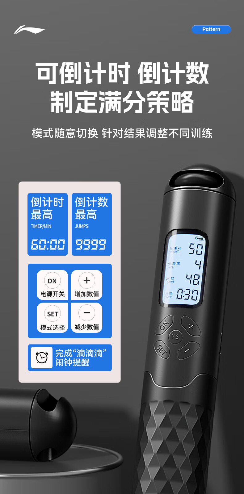 Li Ning (LI-NING) counting skipping rope, dedicated to junior high school students and students for physical examination, professional fitness wire rope for high school entrance examination