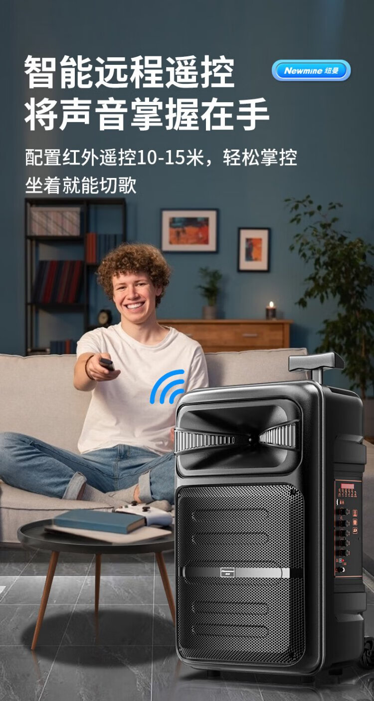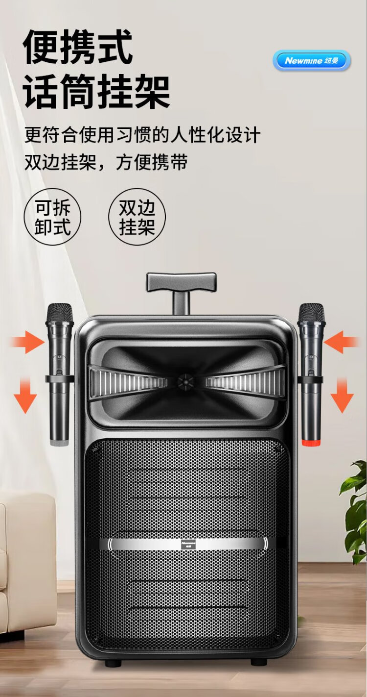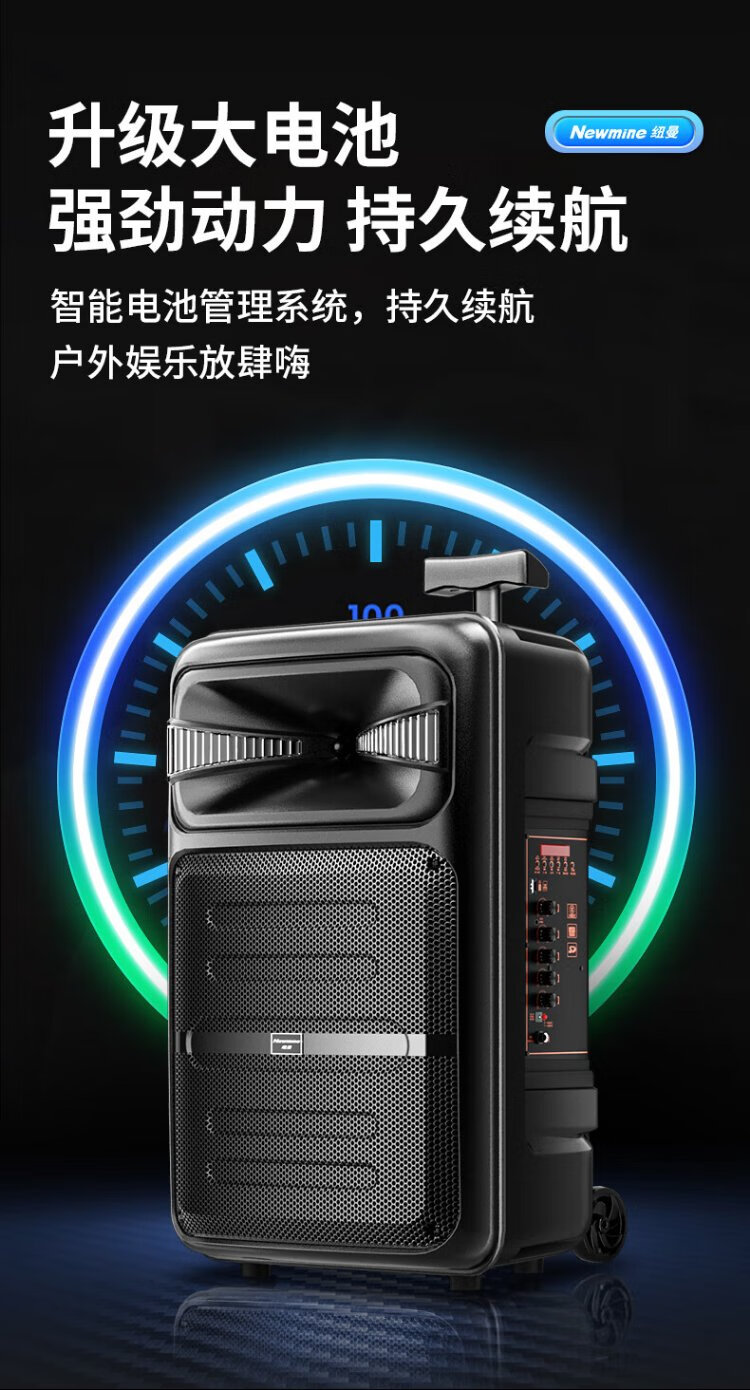 Newman A12 outdoor square dance audio 12-inch high-power loudspeaker mobile portable household trolley Bluetooth speaker street stall stall speaker double wheat version
