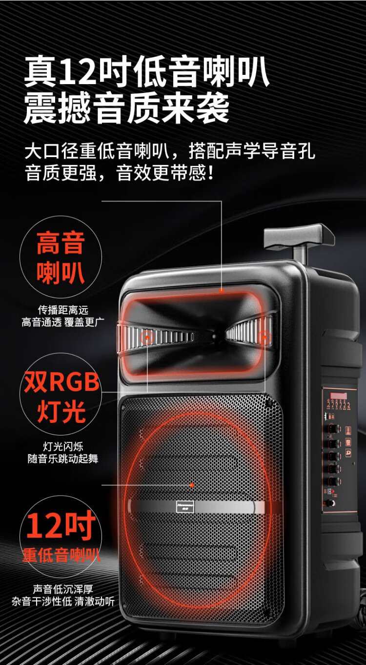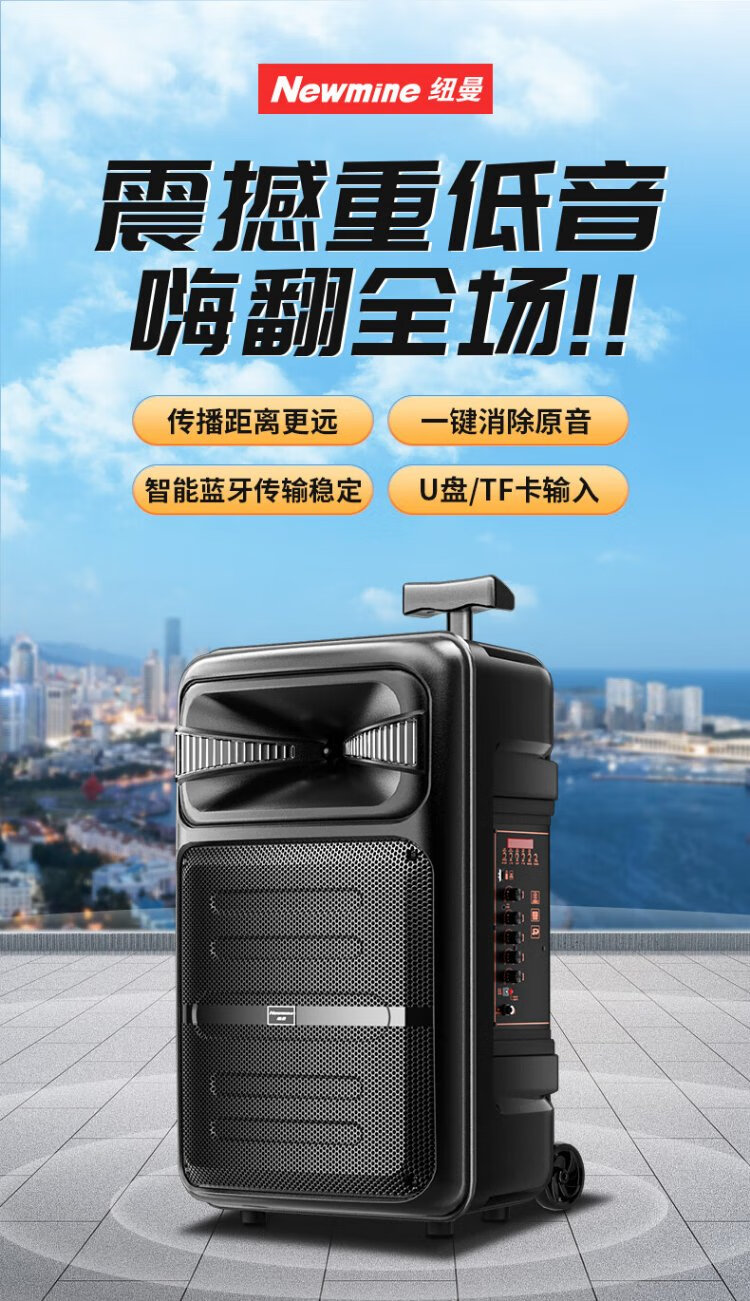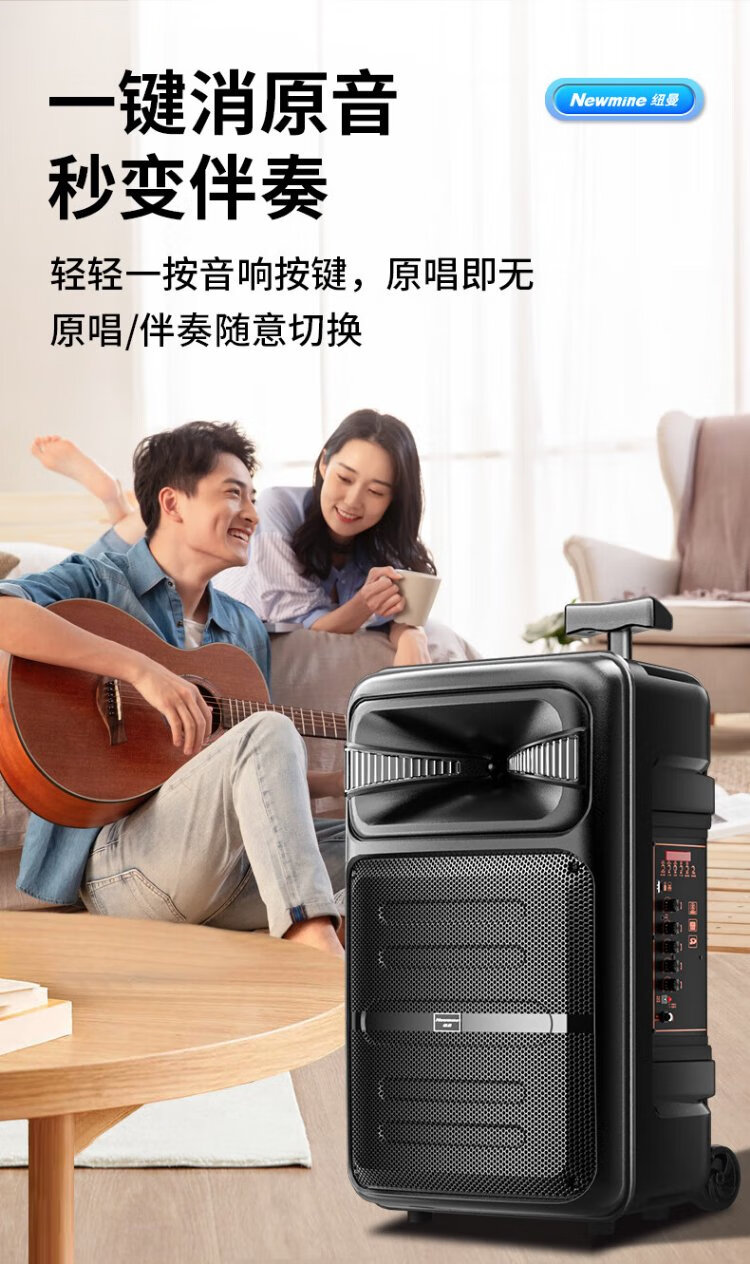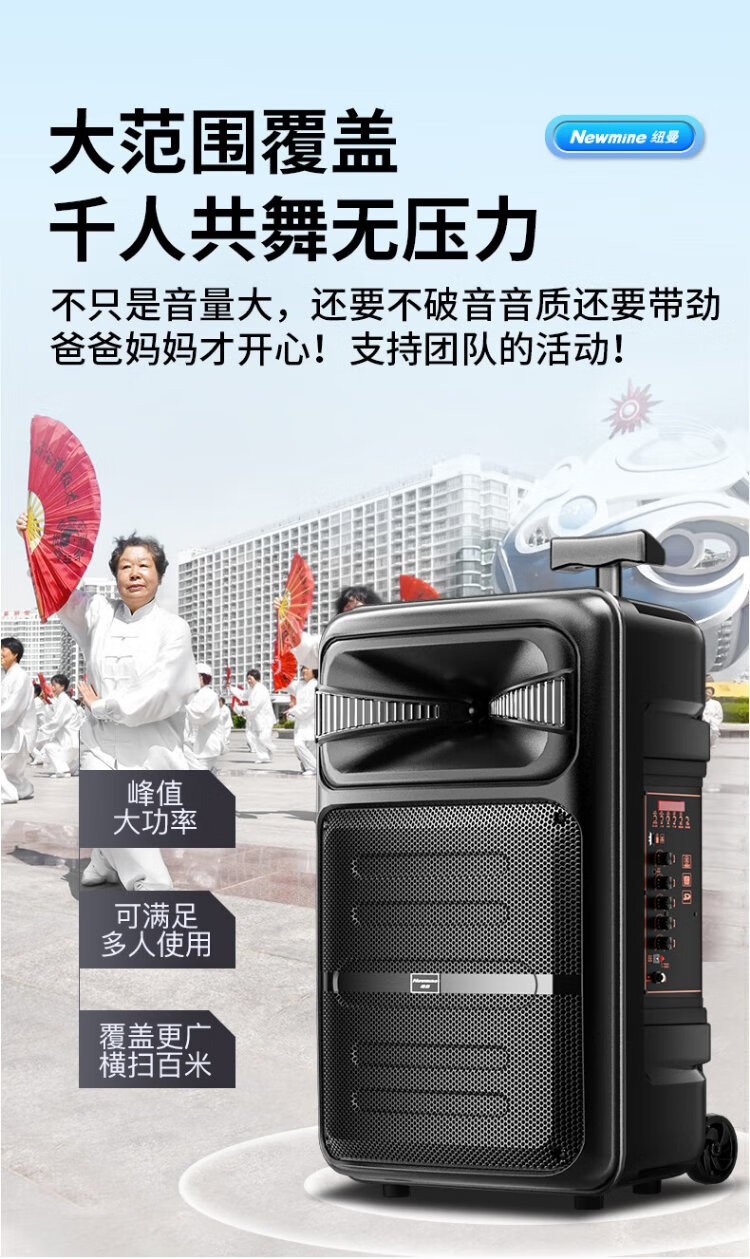 Newman A12 outdoor square dance audio 12-inch high-power loudspeaker mobile portable household trolley Bluetooth speaker street stall stall speaker double wheat version
