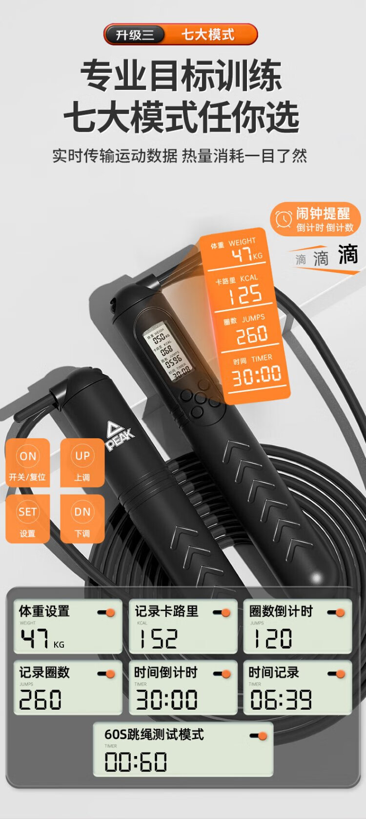 Peak Intelligent Counting Rope Ropeless Adult Racing Weight Loss Sports Primary School Student High School Entrance Examination School Special Fat Burning Rope