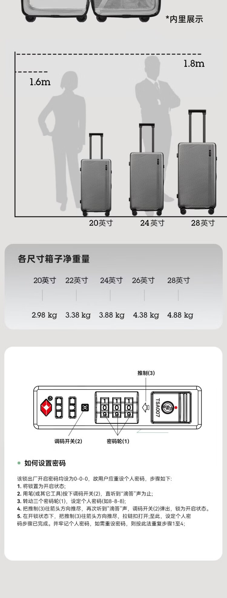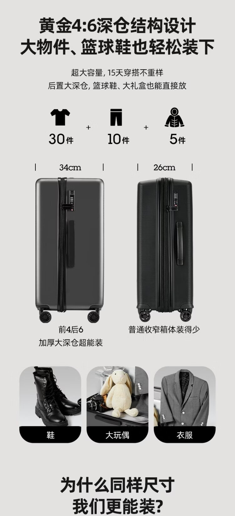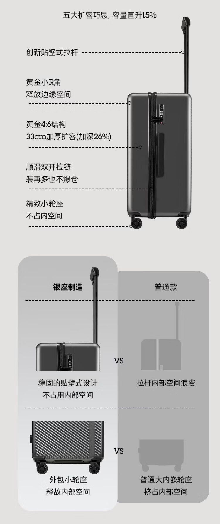 Ginza large-capacity suitcase with deep storage and expanded capacity suitcase password trolley case anti-pressure wear high-grade gray 24 inches