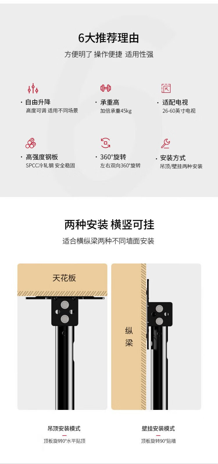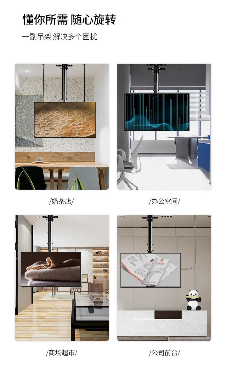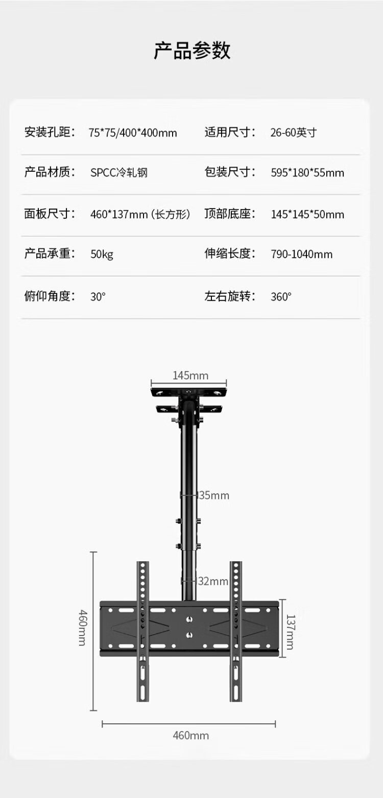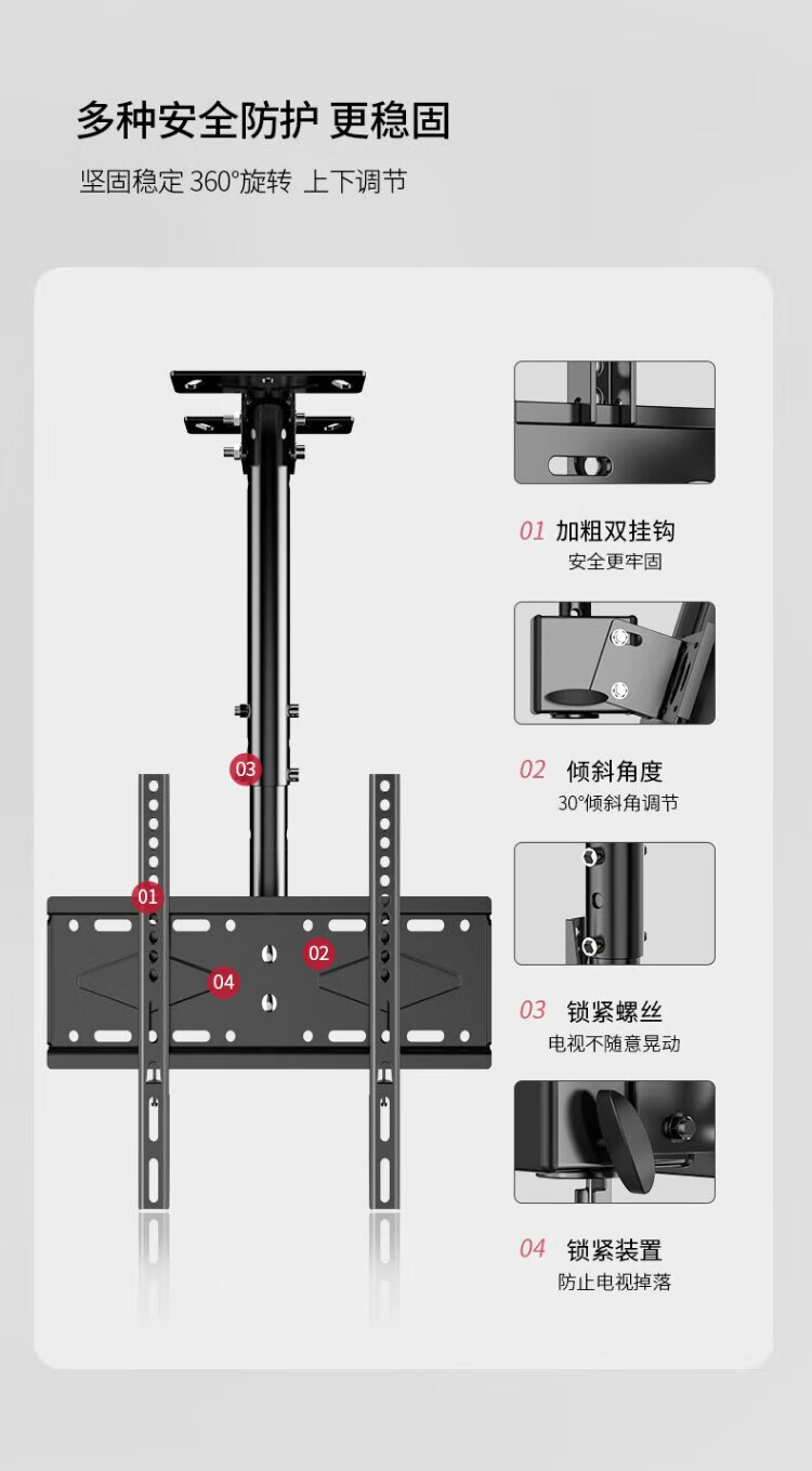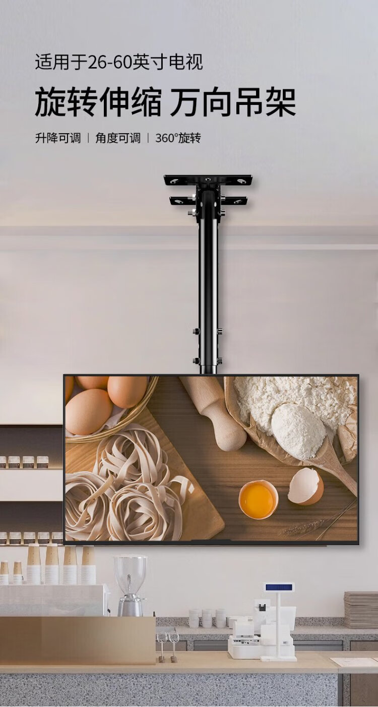 Jiangwutong TV ceiling mount bracket 26-60 inches ceiling mount bracket 360-degree rotating monitor boom LCD TV suspension bracket