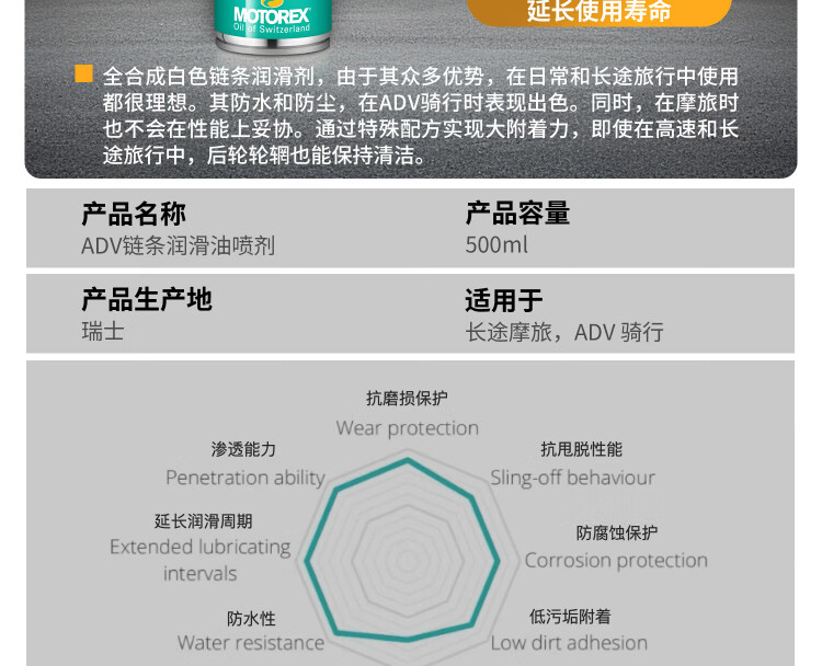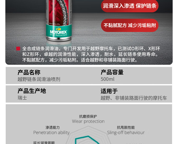MOTOREX original imported motorcycle maintenance body chain equipment cleaning and maintenance off-road chain oil 500ML
