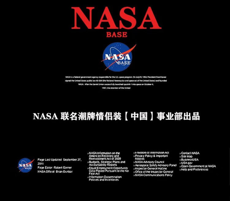 NASA MARVEL down jacket men's winter coat thickened warm bread coat stand collar versatile casual couple wear black 3XL